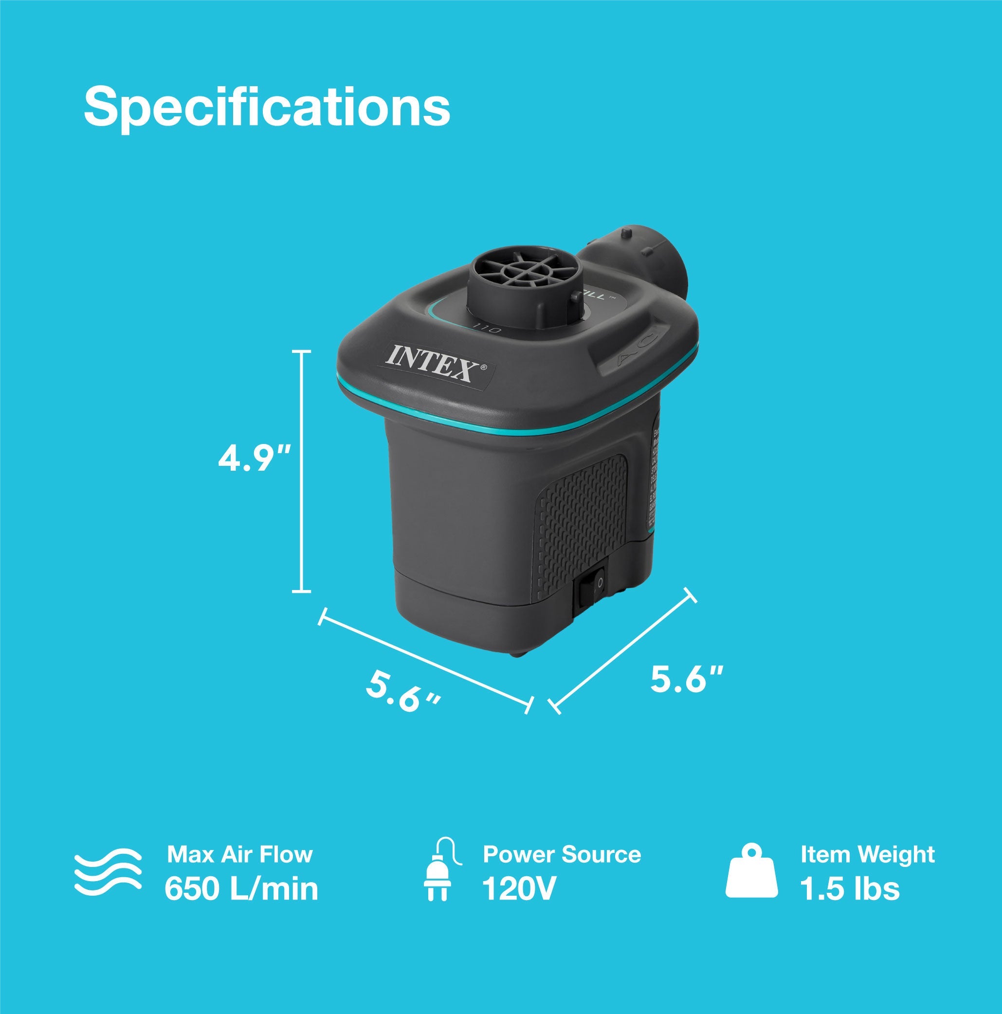 • Sleek, aerodynamic design inflates even the largest mattresses and inflatables in minutes