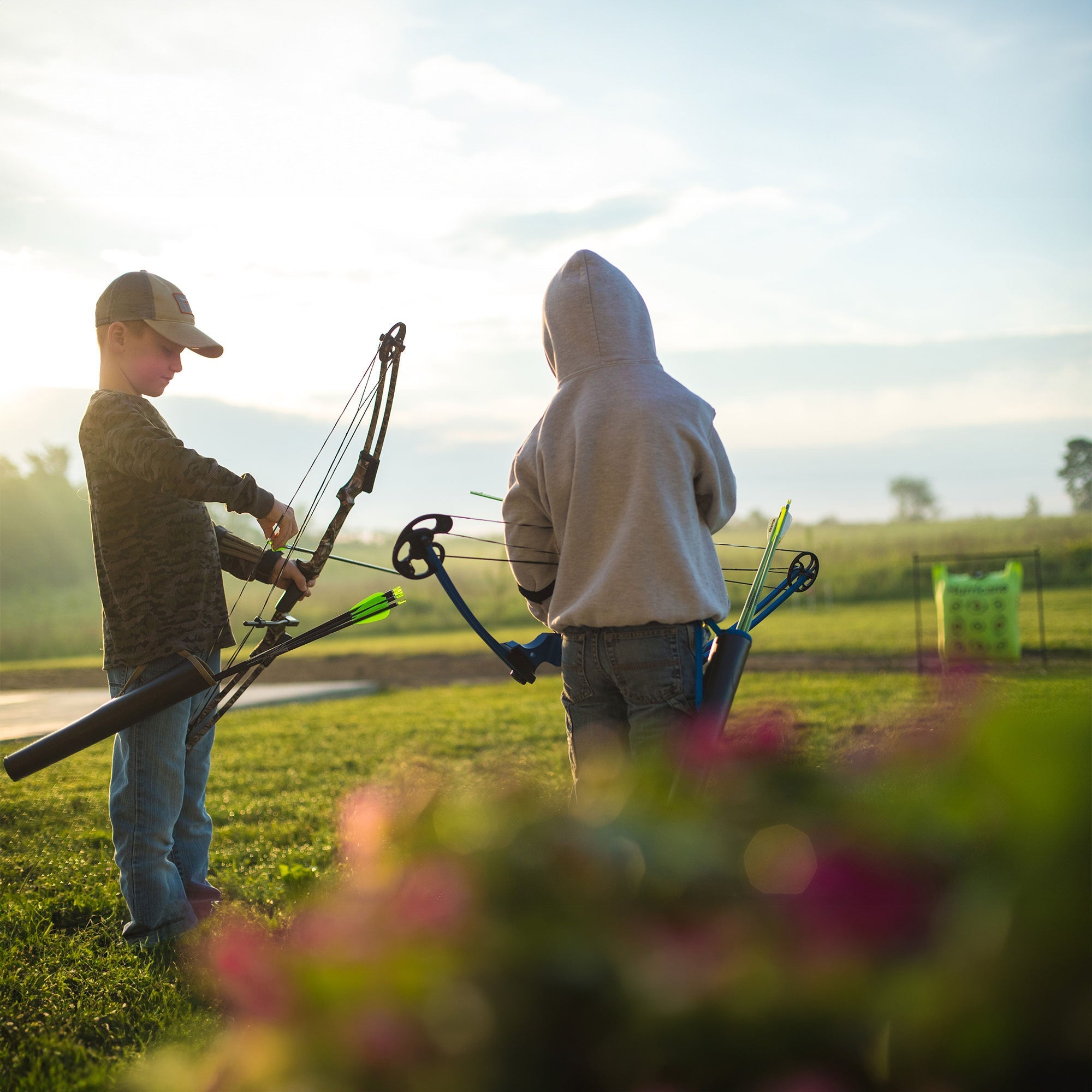 - Comes with (4) versatile bows with an adjustable draw length range of 15 to 30 inches and an adjustable draw weight of 10 to 20 pounds