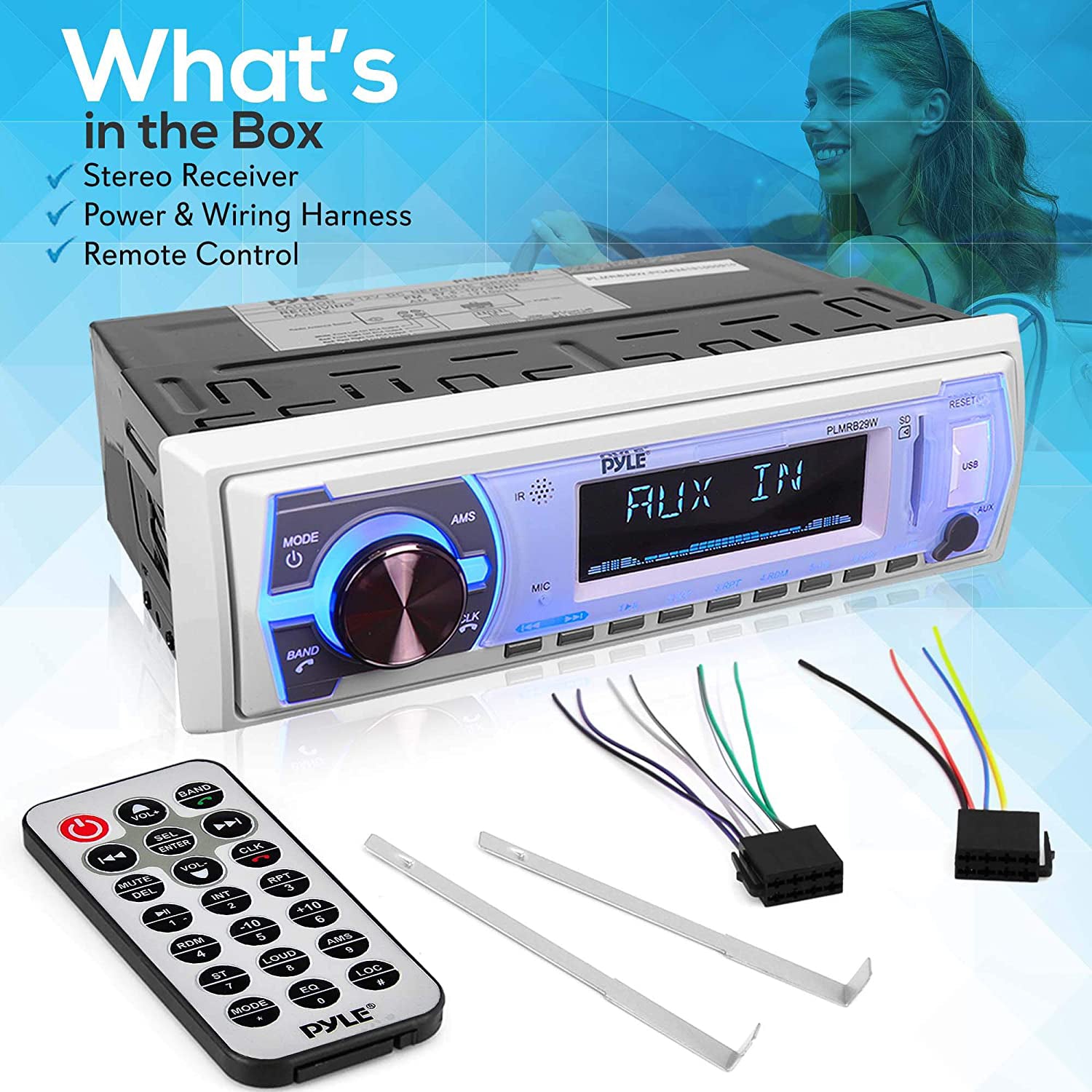 - Includes stereo receiver, power and wiring harness, and remote control for everything you need to get started