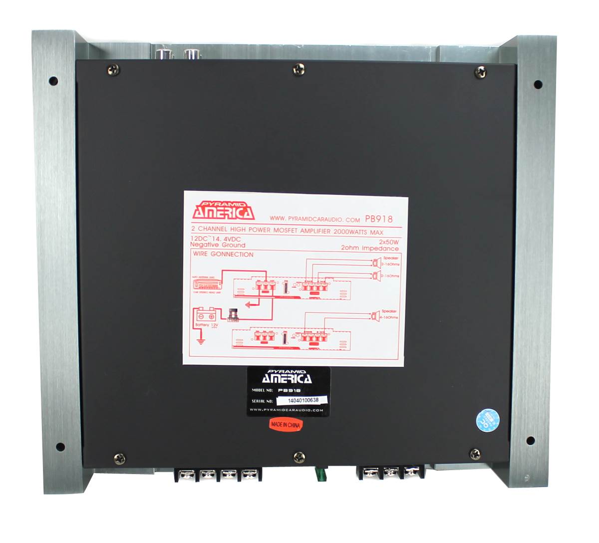 The Pyramid PB918 2 channel car amplifier features a MAX power handling of 1000 watts at 2 channels or bridged into 1 channel at 2000 watts.