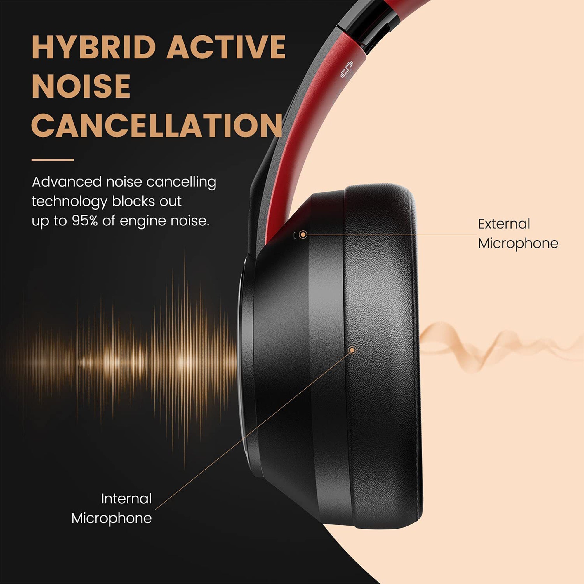 - Hybrid active noise-cancelling headphones with technology that blocks out up to 95% of engine noise