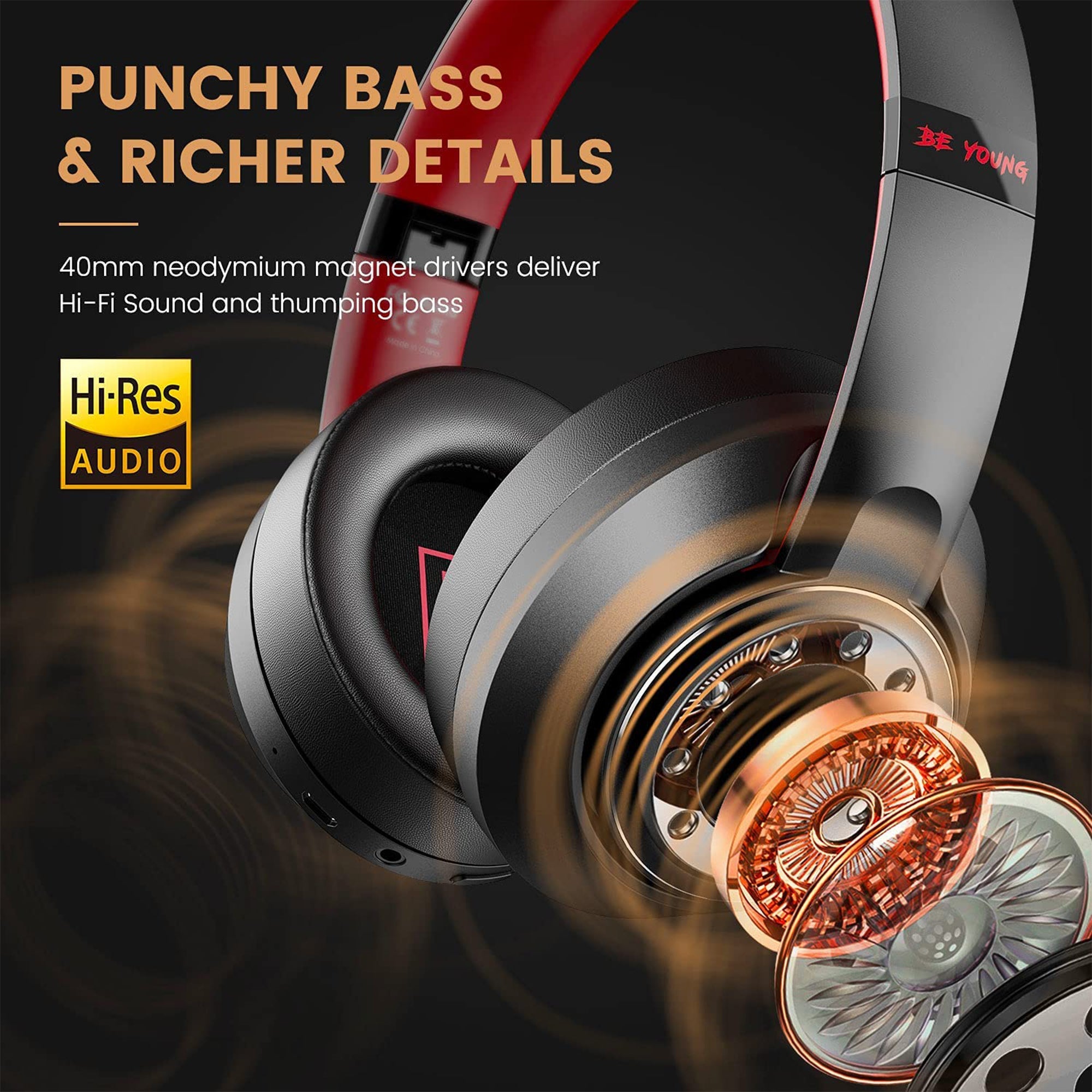 - Bluetooth over-ear headphones feature deep bass and high-fidelity sound quality