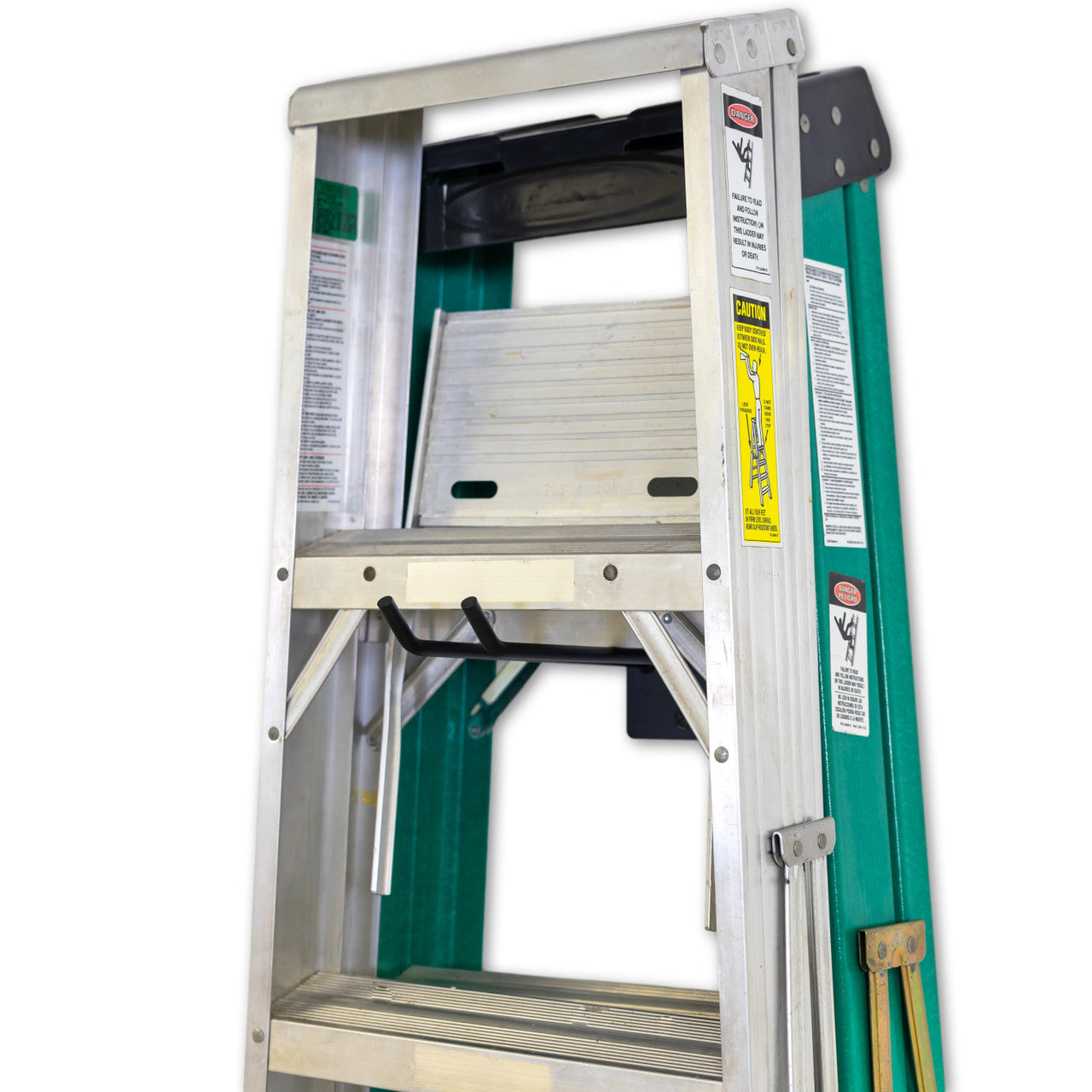 - Maximum storage, 12.3" deep slot hangs 2-3 ladders