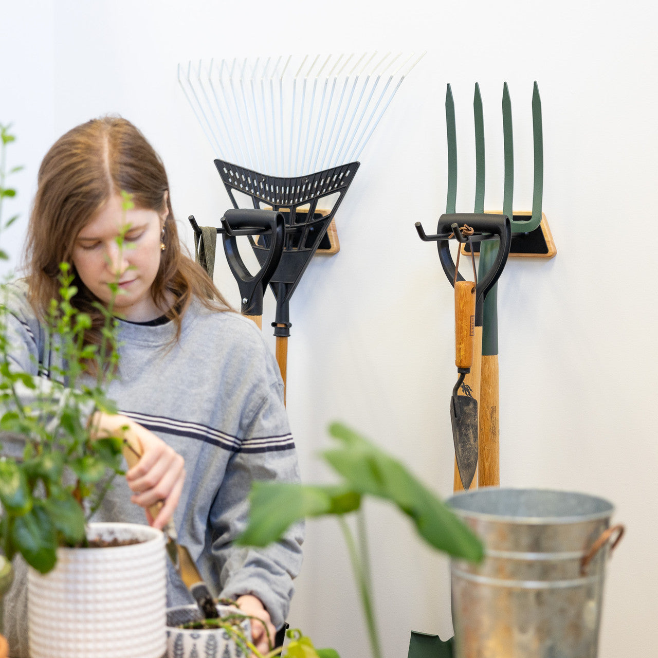 - Organized wall storage for garden tools and more