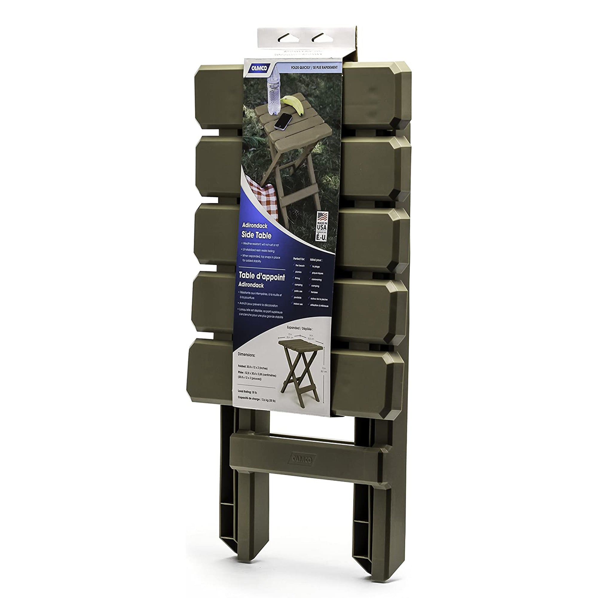 With a sturdy table by your side, you're ready to work, play, or eat outdoors. The Camco Adirondack Plastic Folding Side Table is the perfect companion for trips to the beach, pool, campsite, or out tailgating and picnicking. You can even set up the outdoor table in your backyard or on your patio as another surface at your next cookout.