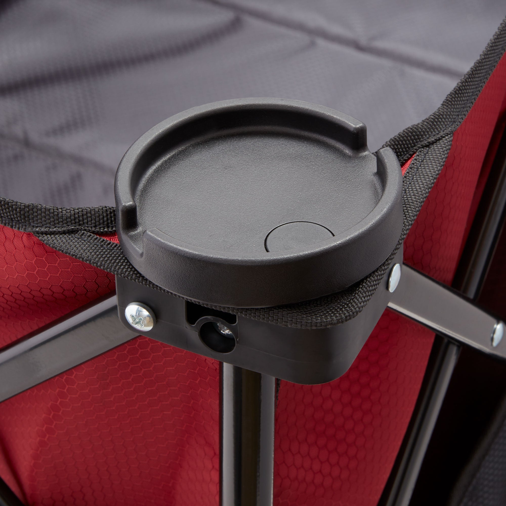 Pack up everything you need in this cart wagon with is huge bed measuring 36 inches long, 21 inches wide, and 15 inches tall. Expand the sides for umbrellas, chairs, camping gear, and additional storage, and use the handy zipper pockets on the pull cart for storing small items like your phone or keys. Enjoy the built-in cup holders for drink storage or for holding your phone so you can be hands-free. When hauling is complete, simply fold down the collapsible cart to its compact size for easy transport and storage. This all terrain wagon features a long handle that provides comfort when pulling and reduces fatigue in the process. Plus, the wagon includes flat-free, 7-inch tires with PVC treads that give you the versatility of a beach cart, garden cart, or a trusted Gorilla cart for navigating gravel or grass. Along with upgraded steering and brakes, the maneuverability system on this wagon is second to none. Constructed from a high-quality sport fabric, the foldable cart is designed with a soft, washable interior for easy cleaning and maintenance.