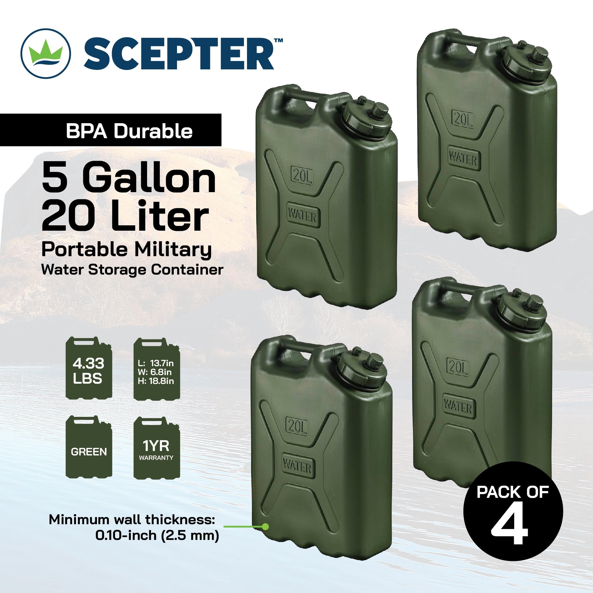 Scepter BPA Durable 5 Gallon 20 Liter Portable Water Storage Container (4 Pack)