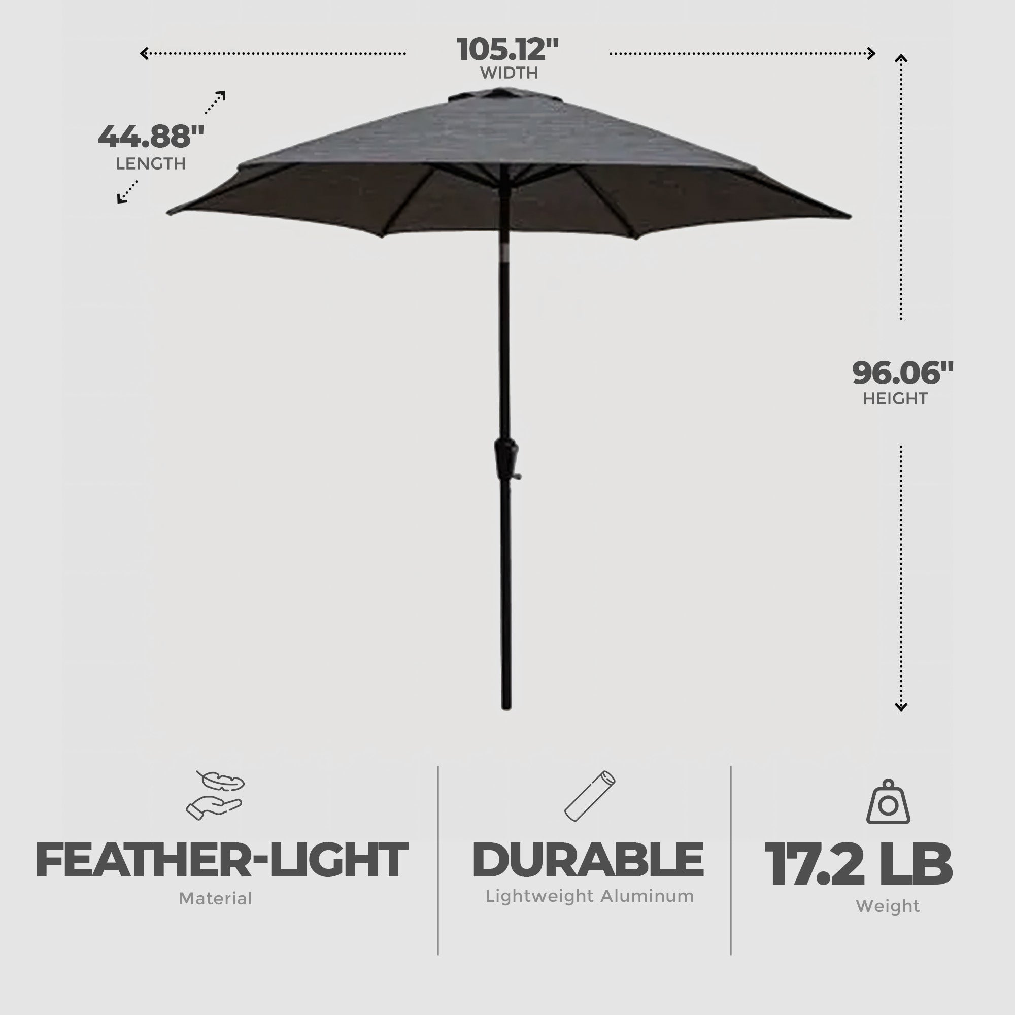 - Lightweight in design, this umbrella is a breeze to handle while maintaining robust sturdiness, making it a versatile and reliable addition to your outdoor furniture ensemble