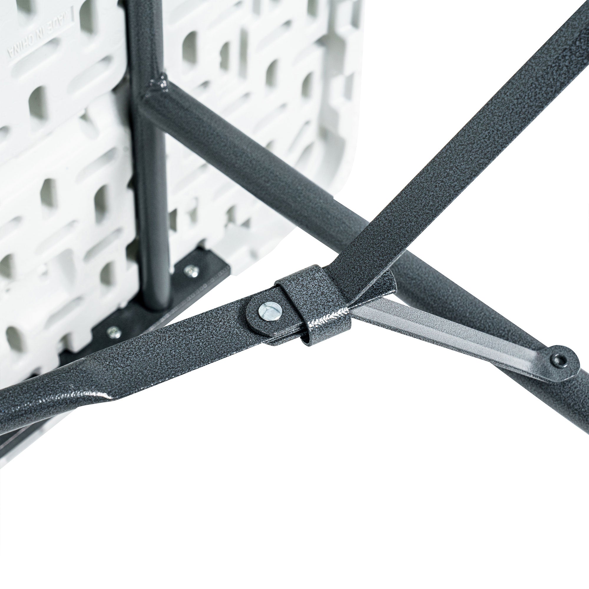 The table’s powder-coated steel frame guarantees support and stability, while its all-weather finish ensures easy cleaning and stain resistance. Foot caps provide extra protection for your floors, so you can confidently use it both indoors and outdoors. This table is designed to meet all your needs, whether you’re hosting a picnic, a party, or an impromptu gathering. It delivers a quick, spacious, and reliable surface every time, making it an essential addition to your home or event supplies.