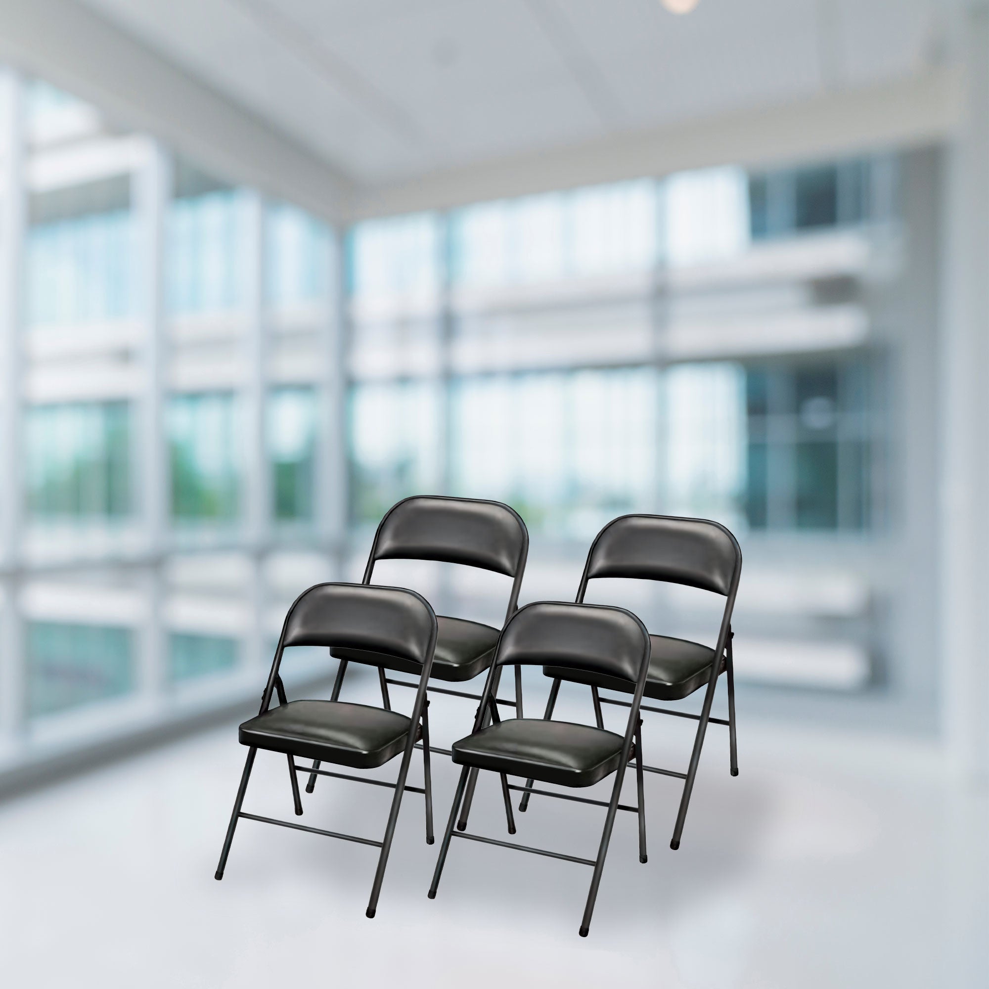 Plastic Development Group Indoor Metal Padded Vinyl Folding Chair, Black (4Pack)