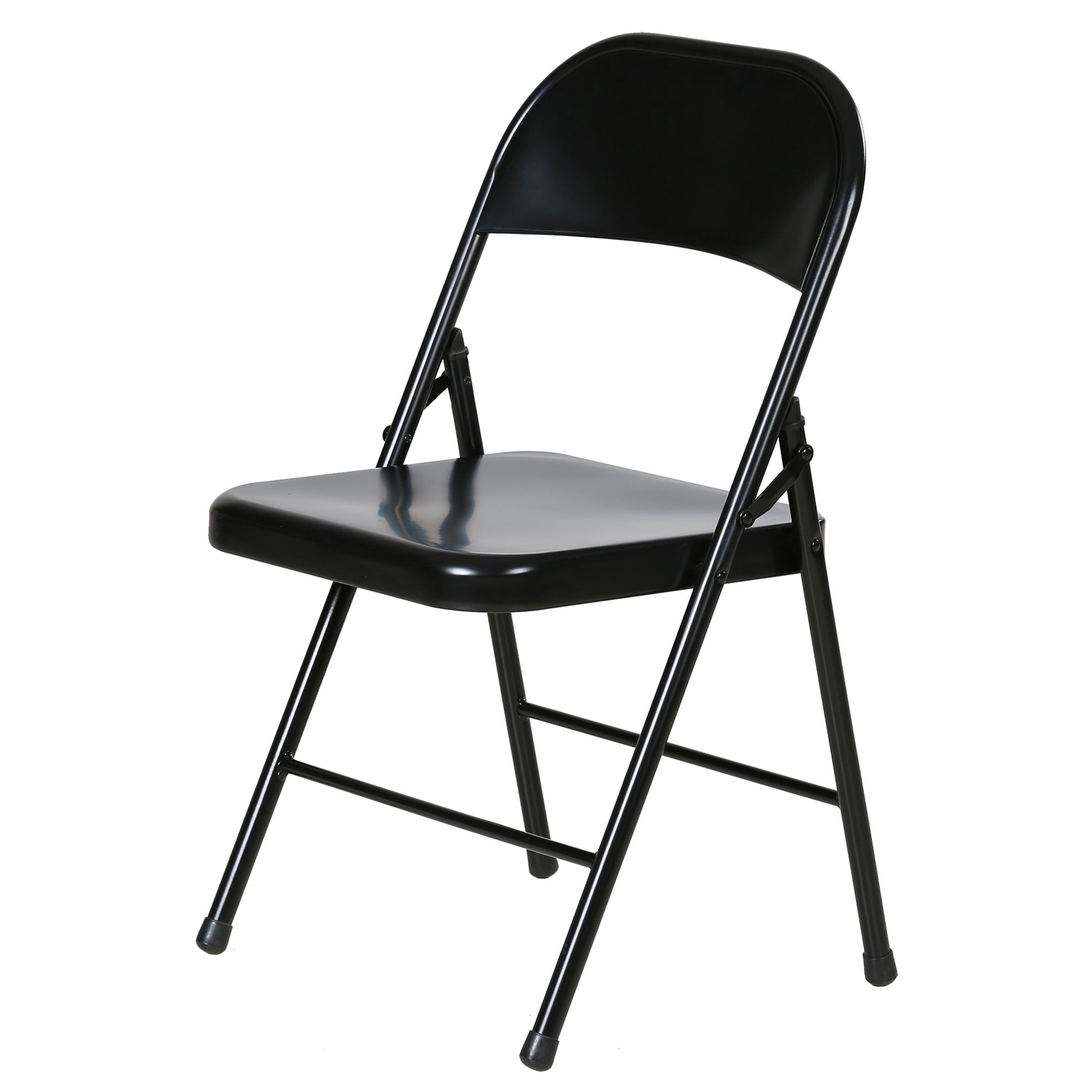 This metal folding chair is built to last and support most guests. This durable chair has a double hinges and welded cross braces, all made out of steel. The all-steel folding chairs have 7/8-inch tubular steel frames with non-marring leg caps so you can place them on any surface, even hardwood floors. Each metal fold up chair can hold up to 225 pounds.