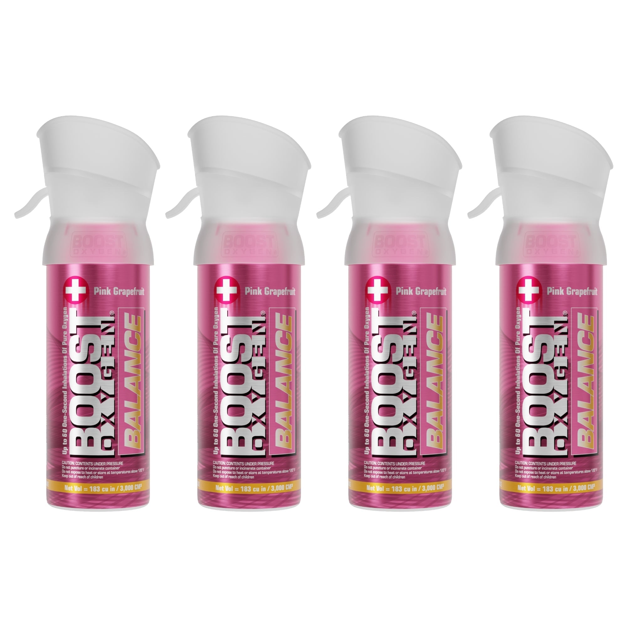 Boost Oxygen Pocket Sized Canned Oxygen w/ Mouthpiece, Pink Grapefruit (4 Pack)