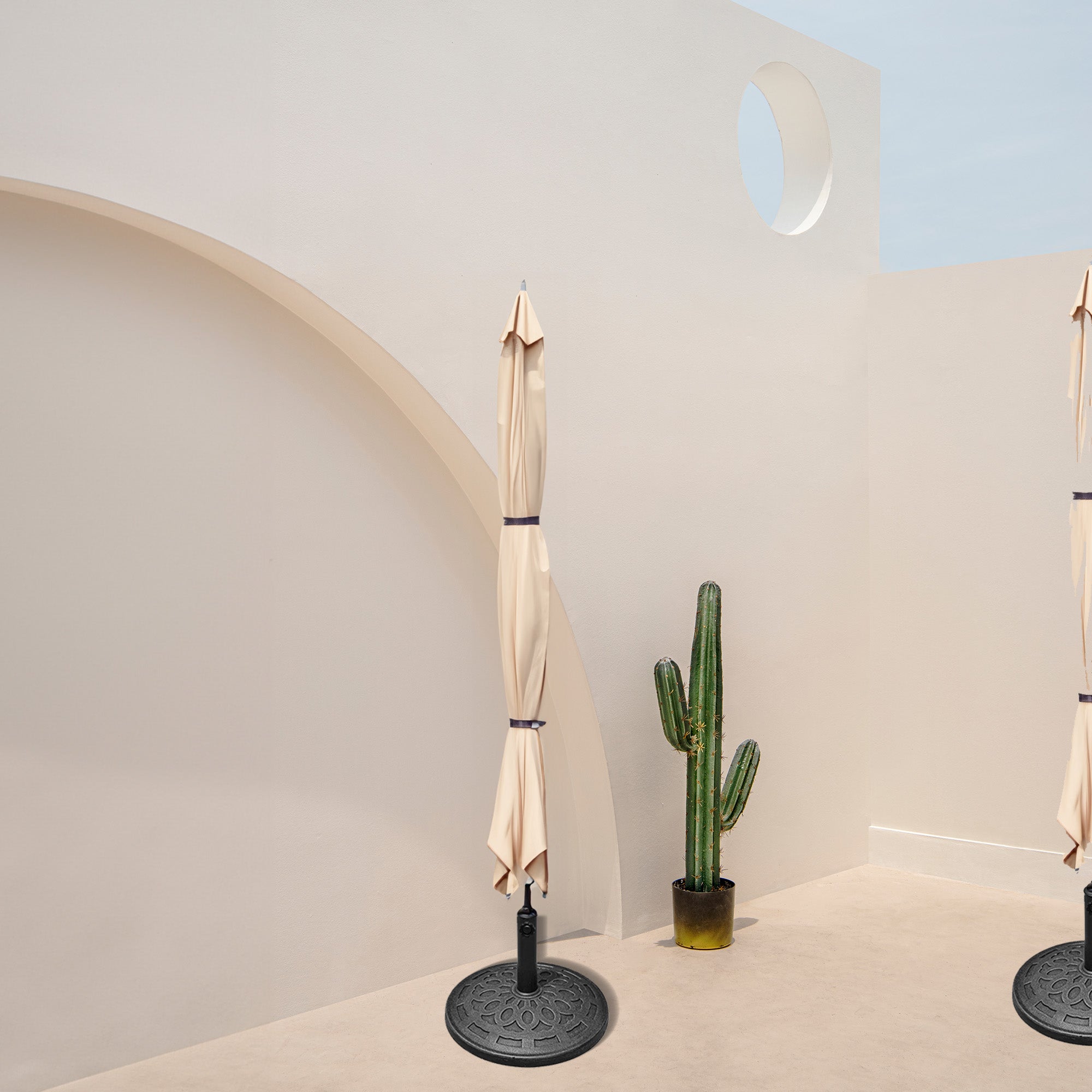 - Crafted from top-quality composite materials, this umbrella base is not just stylish but built to withstand the elements, ensuring long-lasting durability and reliability
