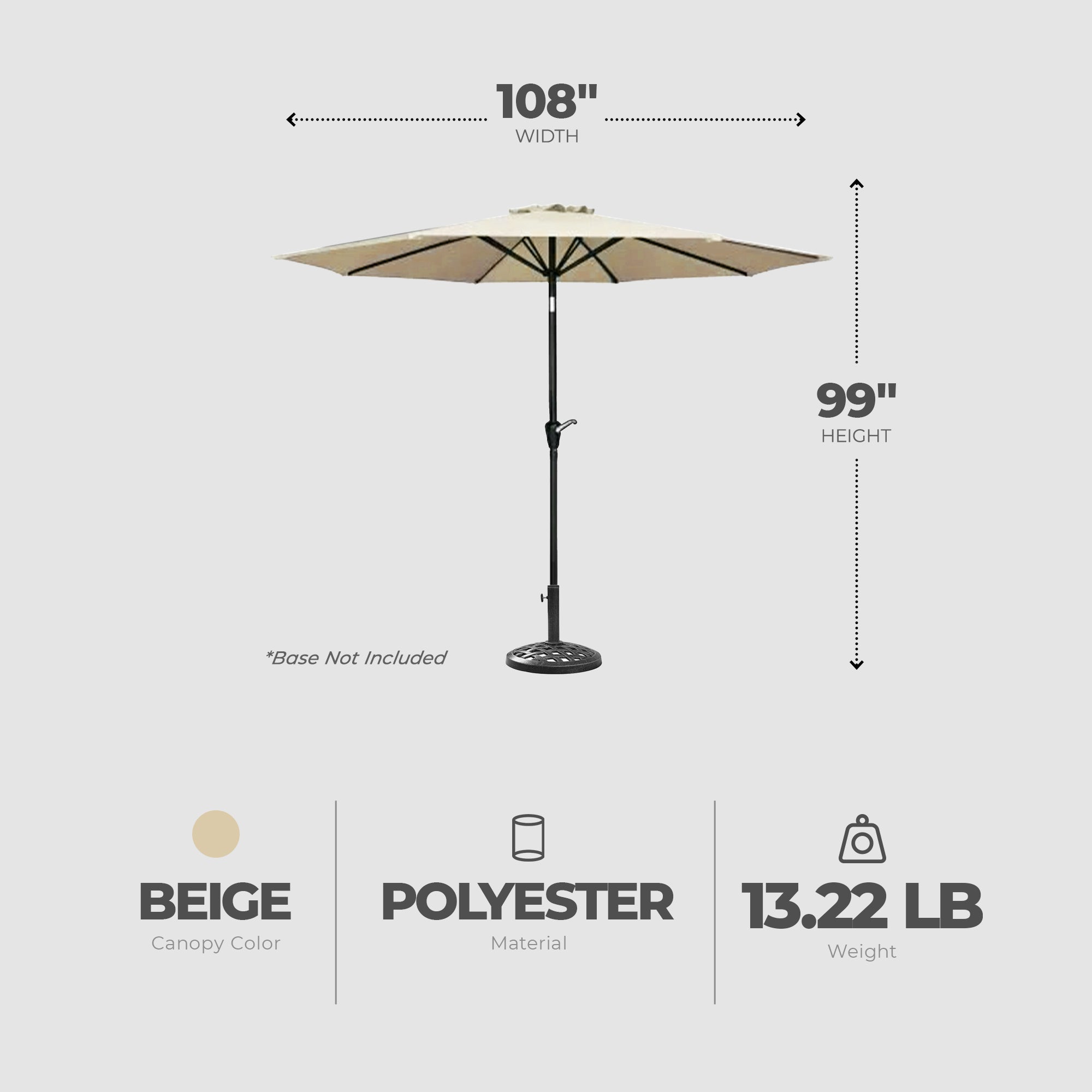Four Seasons Courtyard 9’ Polyester Patio Market Umbrella with Steel Pole, Beige