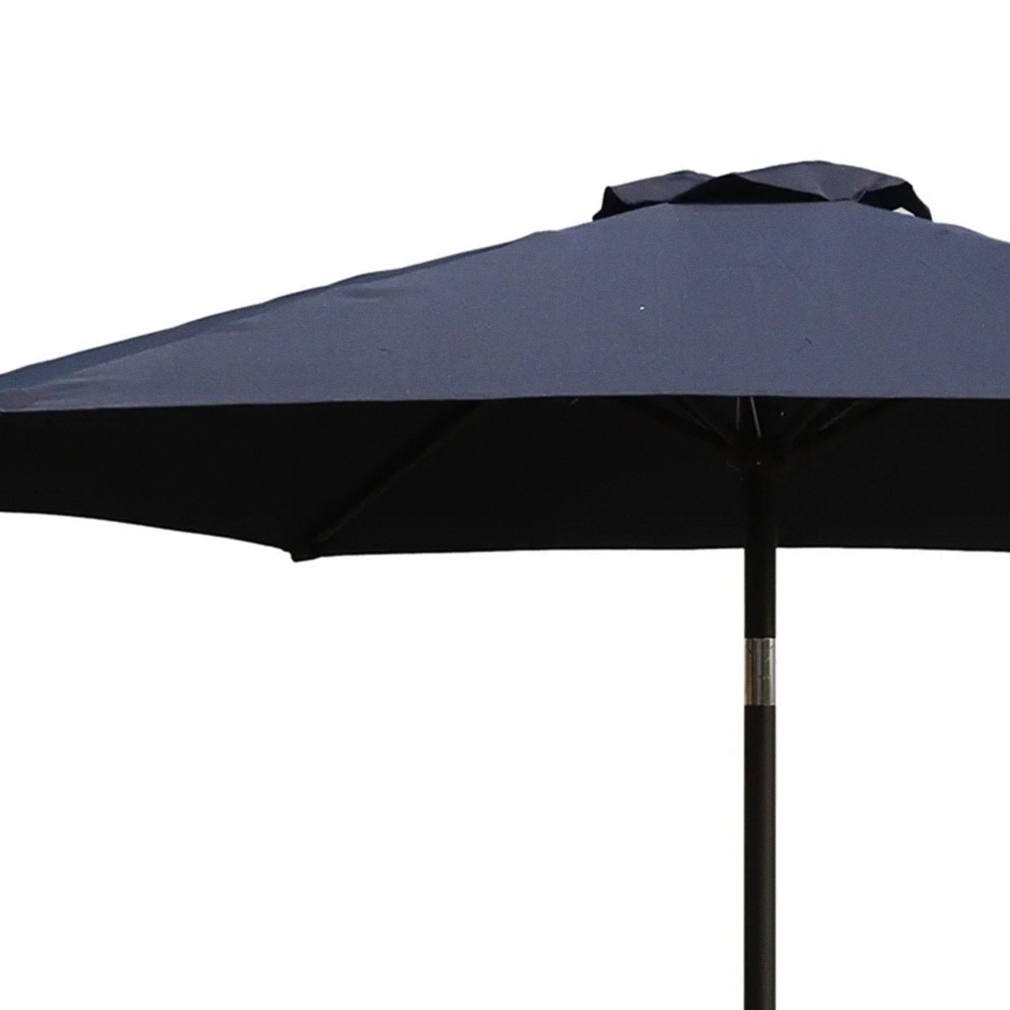 Crafted with a rustproof aluminum pole, this umbrella provides a robust support structure and exudes a contemporary charm with its complementing navy blue olefin. The thoughtful design of this market umbrella goes beyond its aesthetic appeal. Featuring a convenient push-button tilt mechanism, you have the flexibility to easily adjust the angle of this patio essential, ensuring optimal shade coverage throughout your dining experience. No need to worry about constantly repositioning yourself or your guests, the push-button tilt makes it effortlessly simple to adapt to changing sunlight angles.
