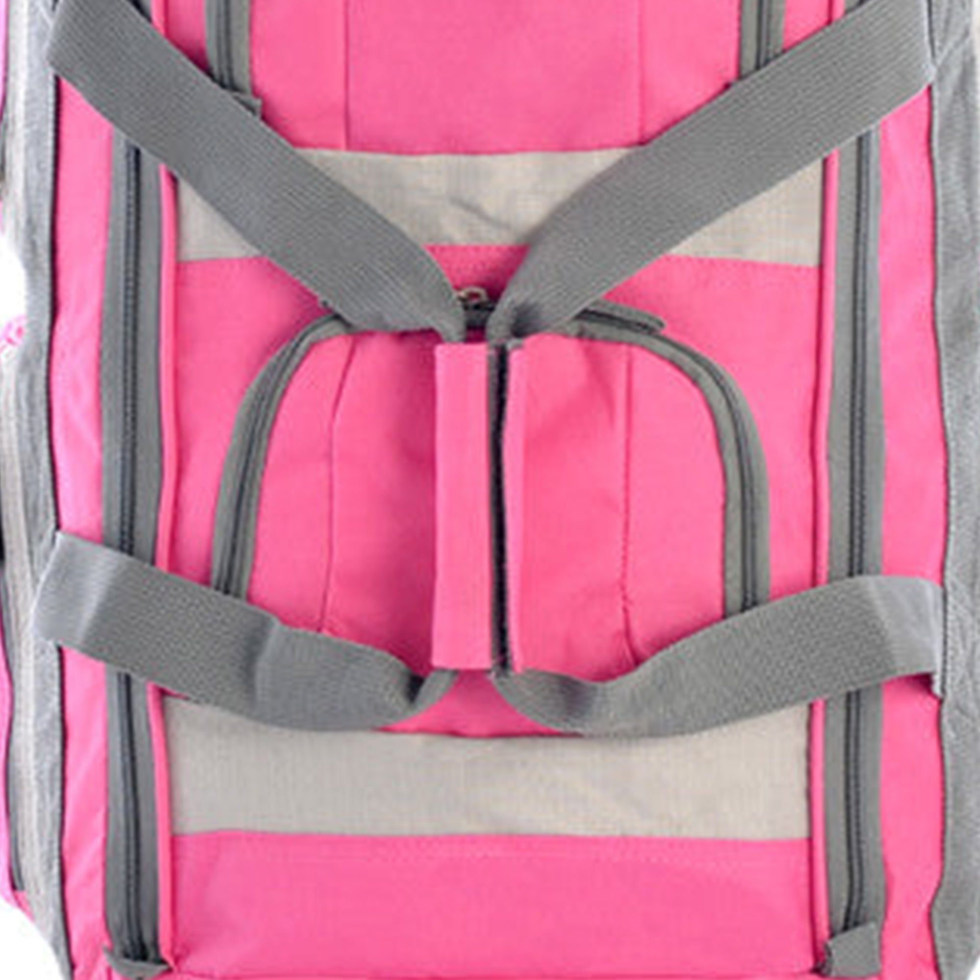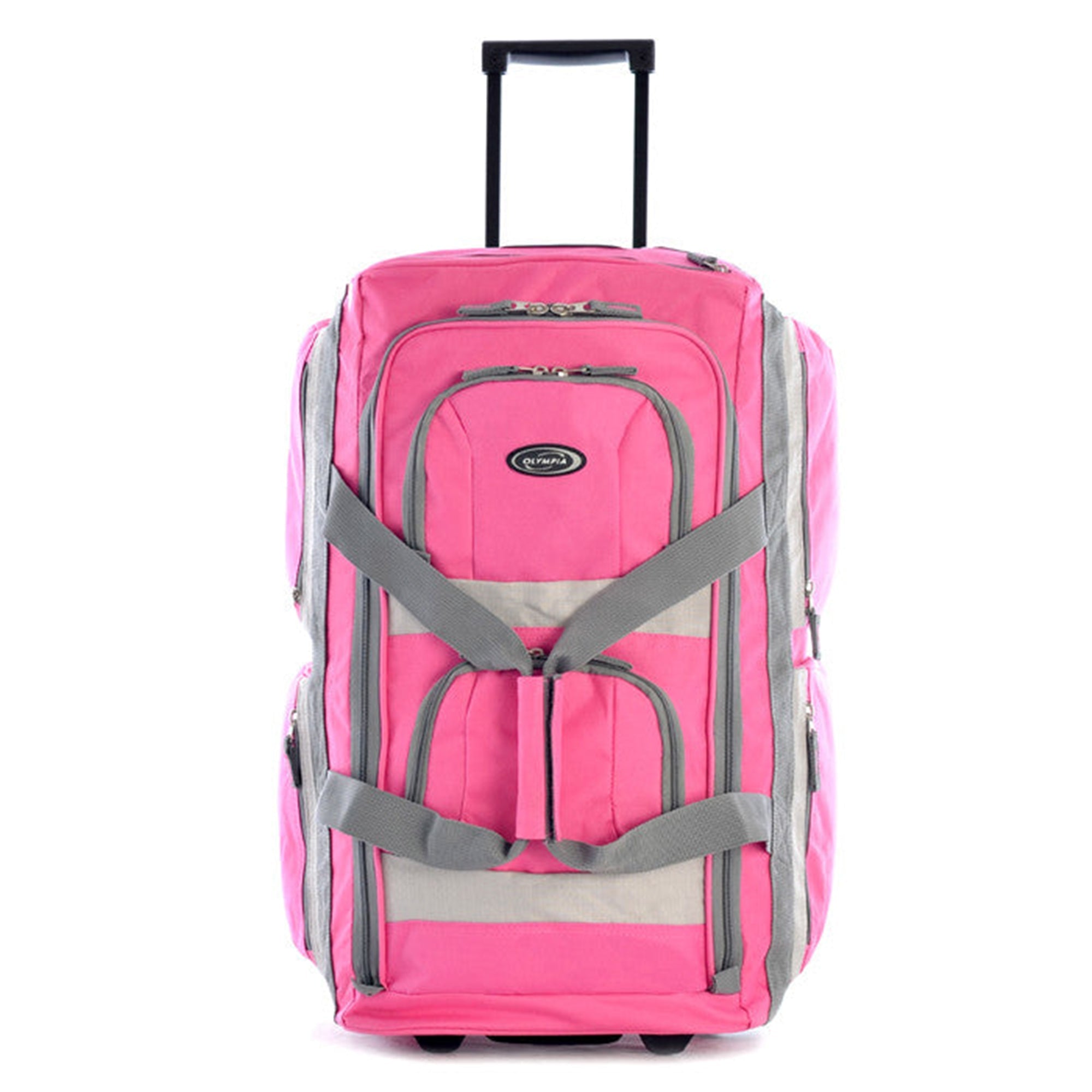 Olympia 26 Inch 8 Pocket Rolling Duffel Bag with Retractable Handle, Hot Pink