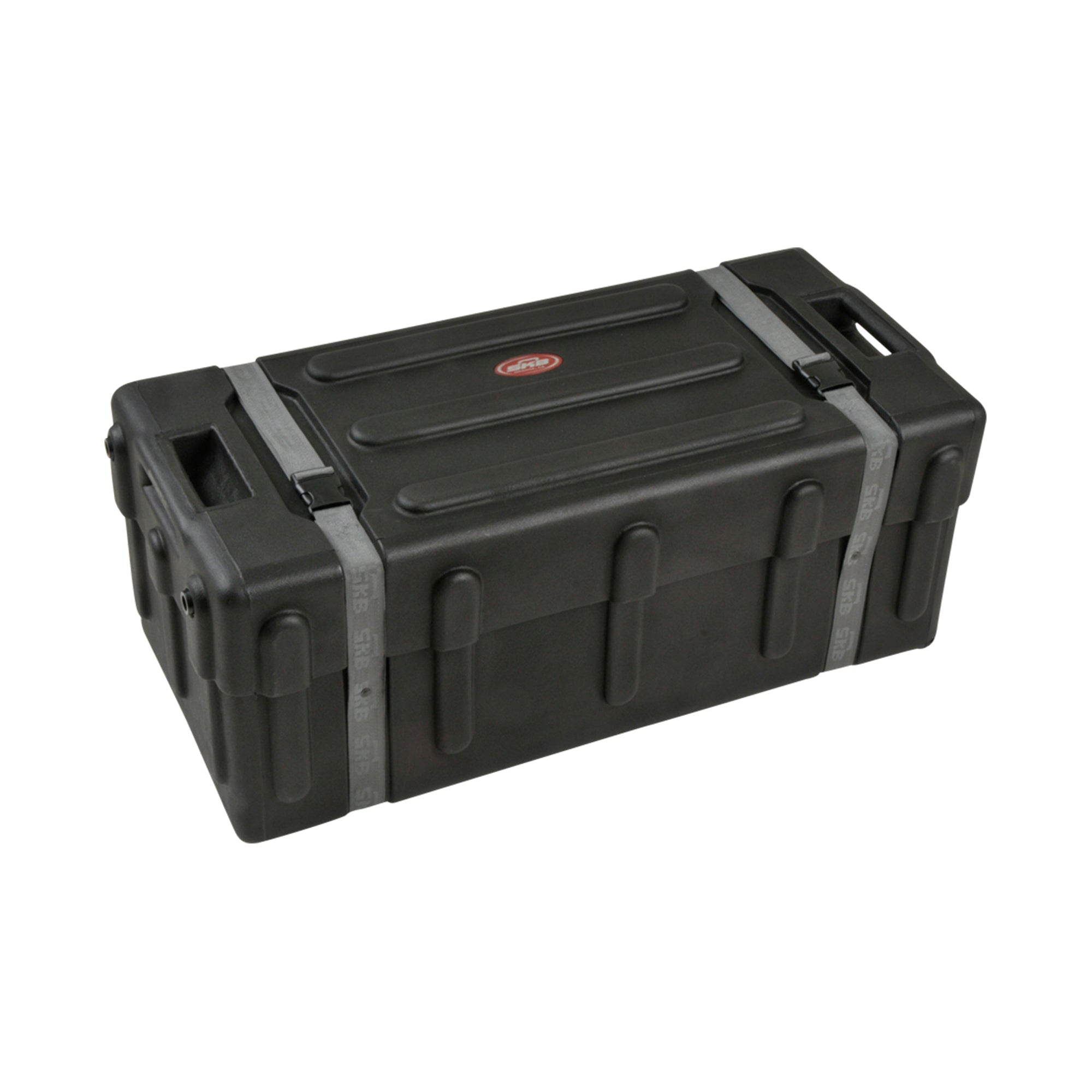 Proper storage and organization is essential for drummers traveling from gig to gig. The SKB Mid-Sized Drum Hardware Case ensures all your items are safe and secure as you head to your next concert or jam session. Compact and perfect for transport, the hardware case works great for easy transportation. The spacious interior holds everything from screws and tools to seats and stands. Tote the case anywhere with the convenient pull-out handle, and roll your kit to your next gig on the built-in roller blade wheels. The small size allows the case to comfortably fit in your trunk or backseat, perfect for the on-the-go drummer concerned about space. Once you arrive, you can set up easily with the telescoping lift-off cover. After you pack up, secure the case with the heavy-duty nylon web strap and high-tension slide release buckles. Durable, polyethylene plastic and injection-molded handles ensure the case and its contents survive the trip so you're ready to rock out on arrival. Perfect for amateurs and pros alike, keep your kit safe on your next trip with the SKB Mid-Sized Drum Hardware Case.