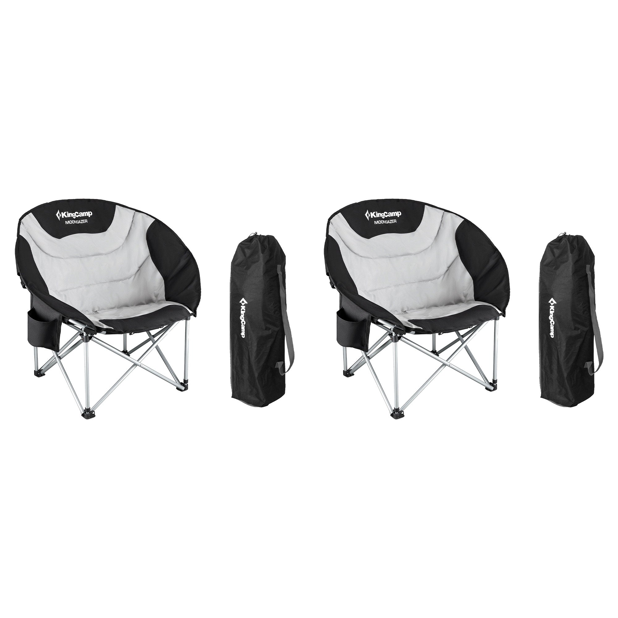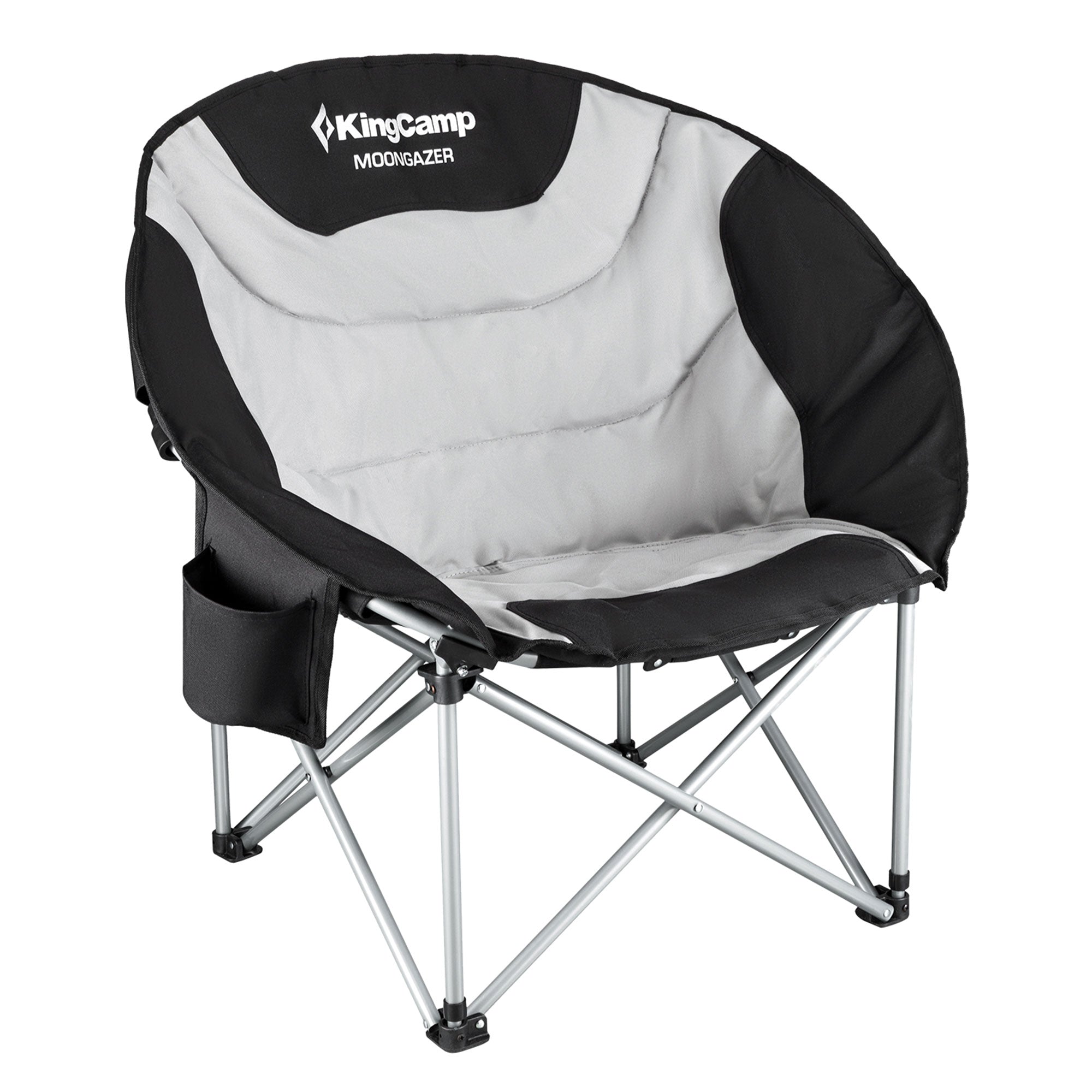KingCamp Folding Saucer Lounge Chair with Cup Holder Storage, Black/Medium Gray