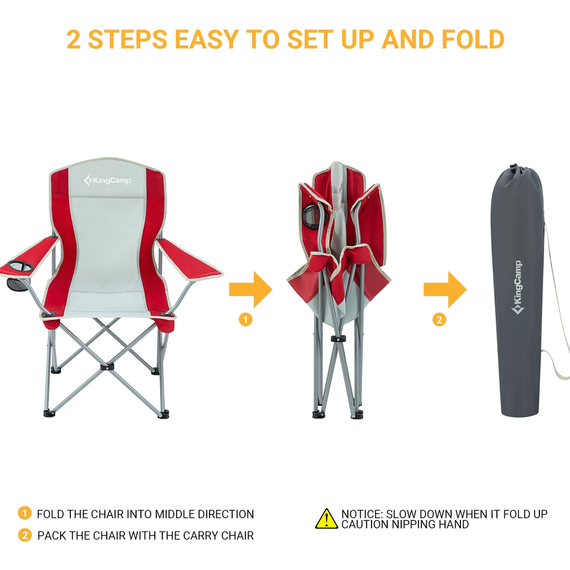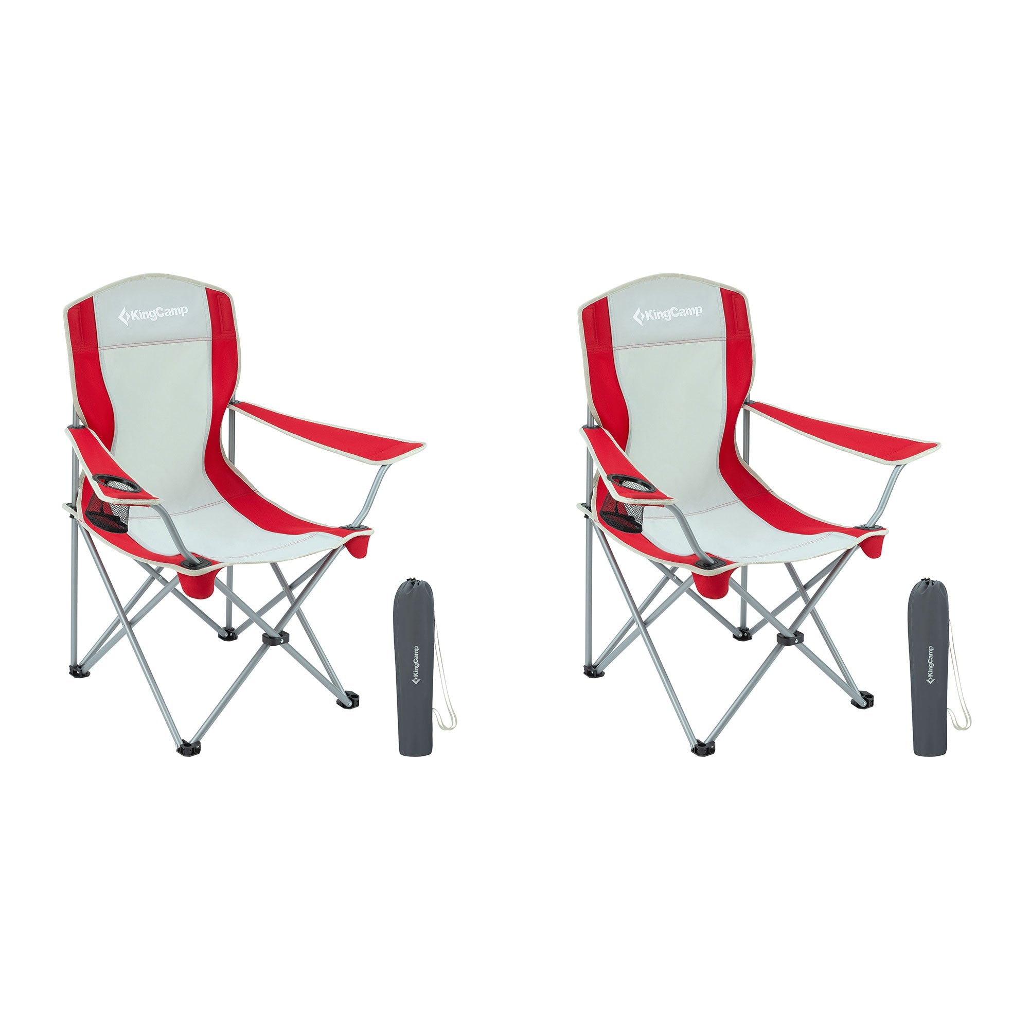 KingCamp Portable Folding Chair with Mesh Cup Holder and Carry Bag, Red/Gray (2 Pack)
