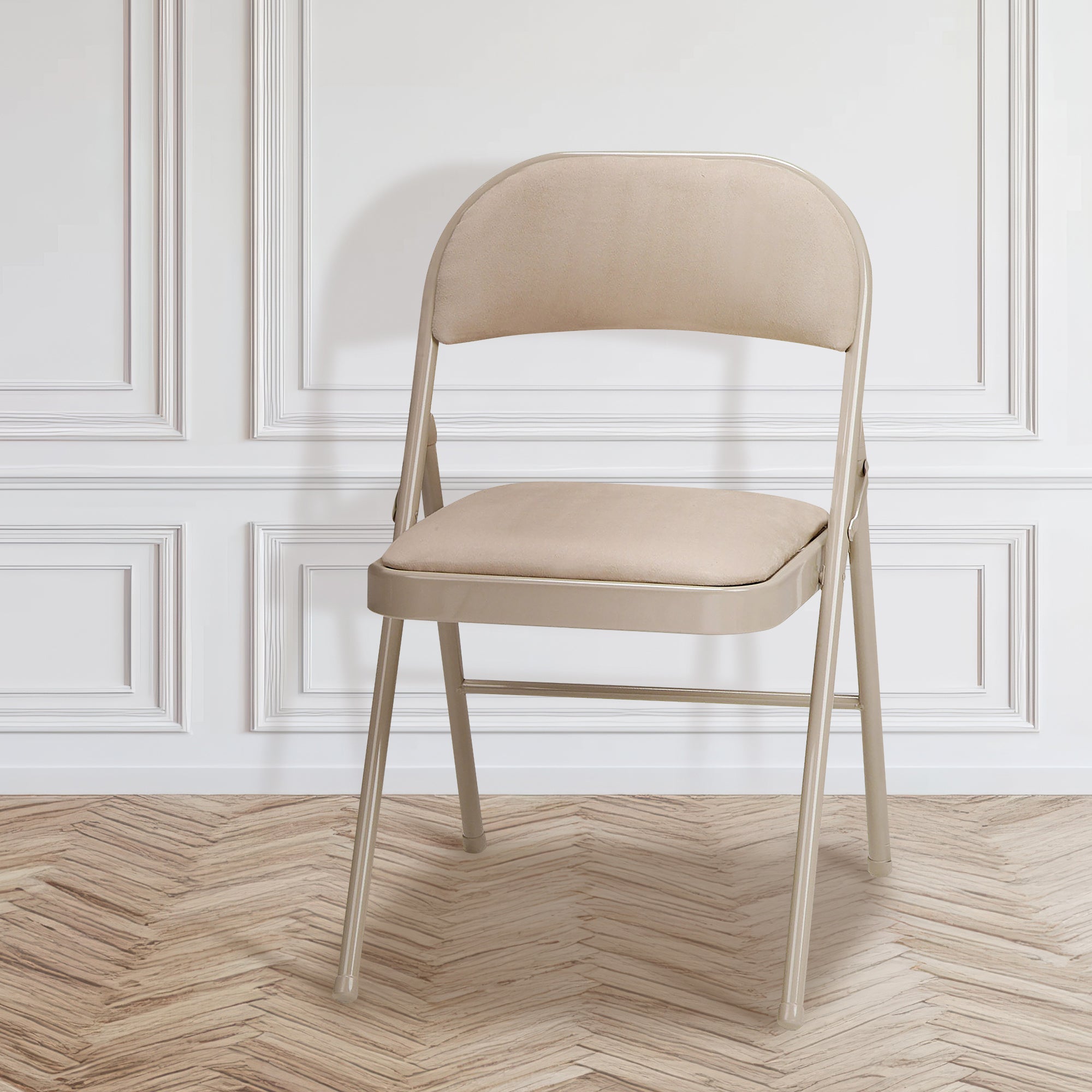 MECO Sudden Comfort Deluxe Sand Fabric Padded Folding Chair, Buff (Set of 4)