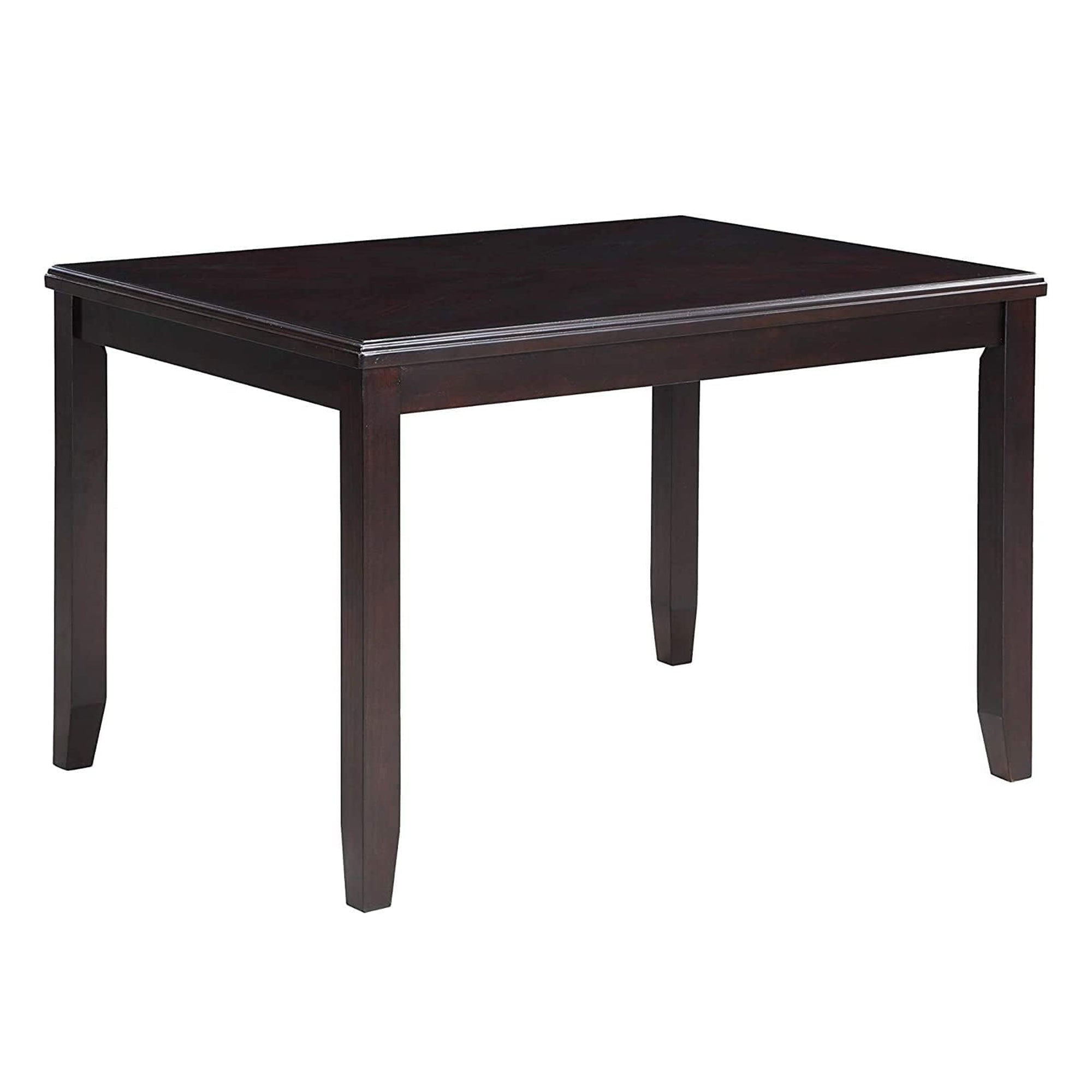 This all-in-one dining collection includes a 48-inch rectangular table and 4 substantial chairs, making it suitable for traditional to contemporary interior design styles. Crafted from solid rubberwood and veneers, this all-wood collection is built to last. The tabletop is elevated by its reverse diamond match veneer top, adding a sophisticated touch to your room, while a sturdy banded apron around the tabletop adds durability and style.