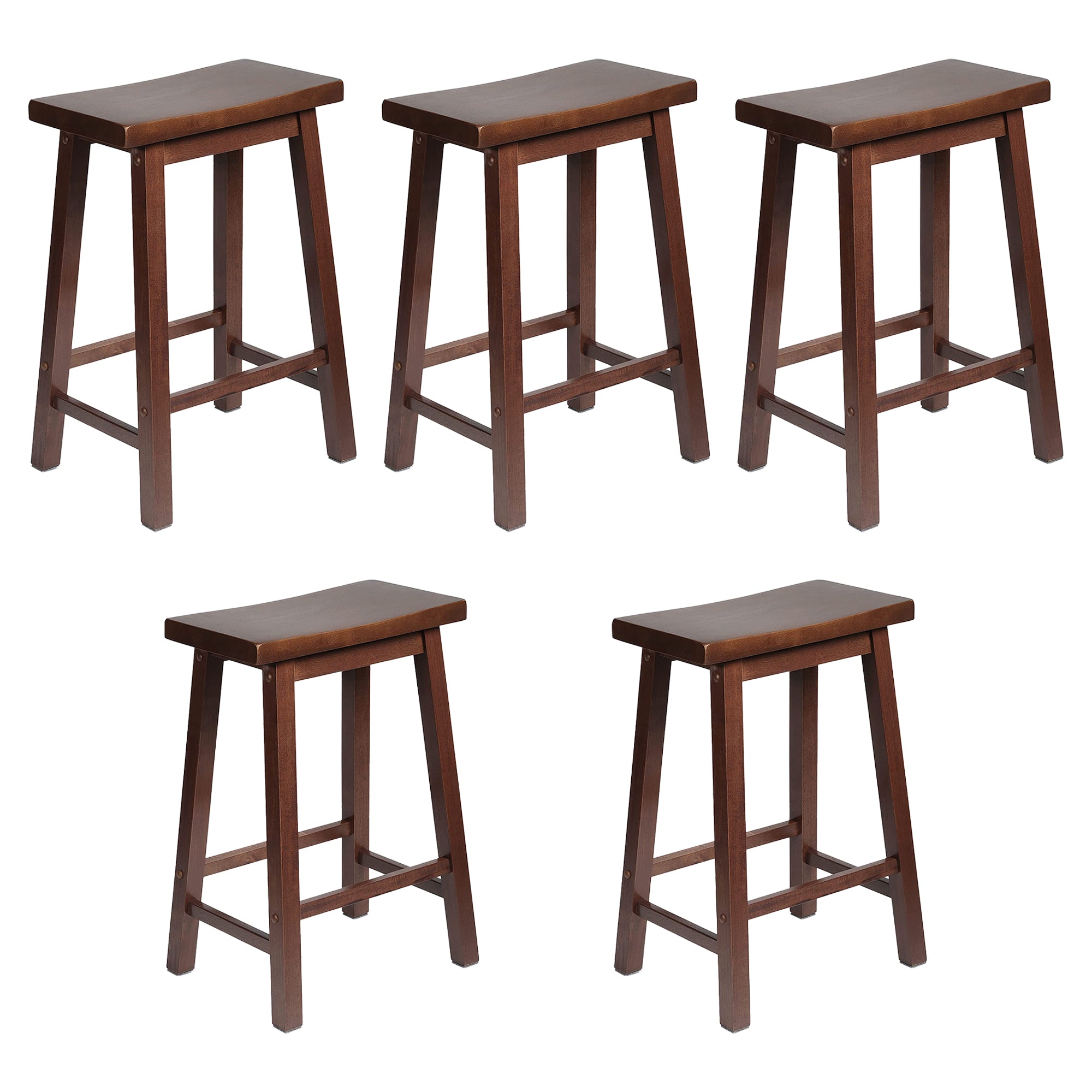 PJ Wood Classic Saddle Seat 24 Inch Kitchen Bar Counter Stool, Walnut (5 Pack)