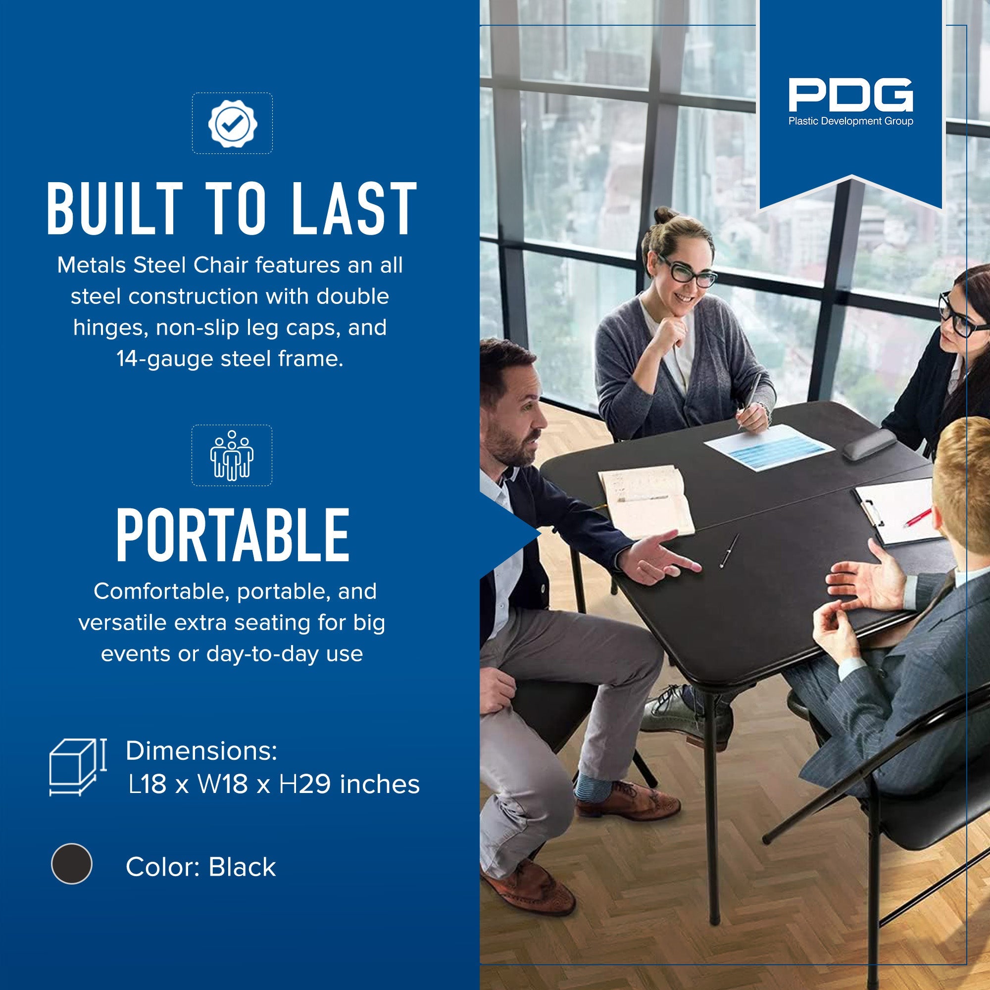 Plastic Development Group Commercial Party Heavy Duty Steel Folding Chair, Black
