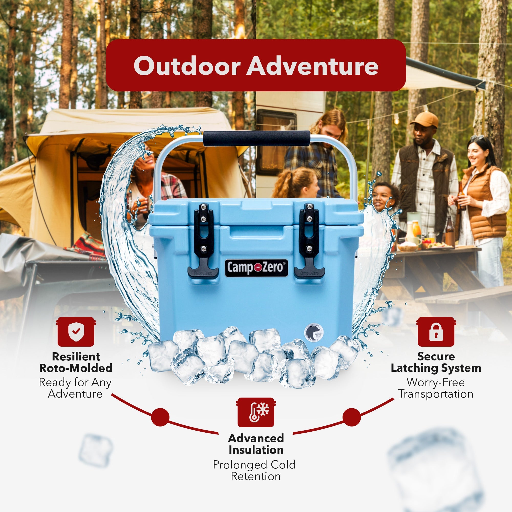 Take your outdoor experience to a whole new level with this dependable companion that's ready for any adventure. Whether it’s a camping trip, a day at the beach, or a tailgate party, the 10-Liter 10.6-Quart Lidded Cooler with 2 Molded-In Cup Holders from CAMP-ZERO offers reliability, ruggedness, and ample space for your refreshments.