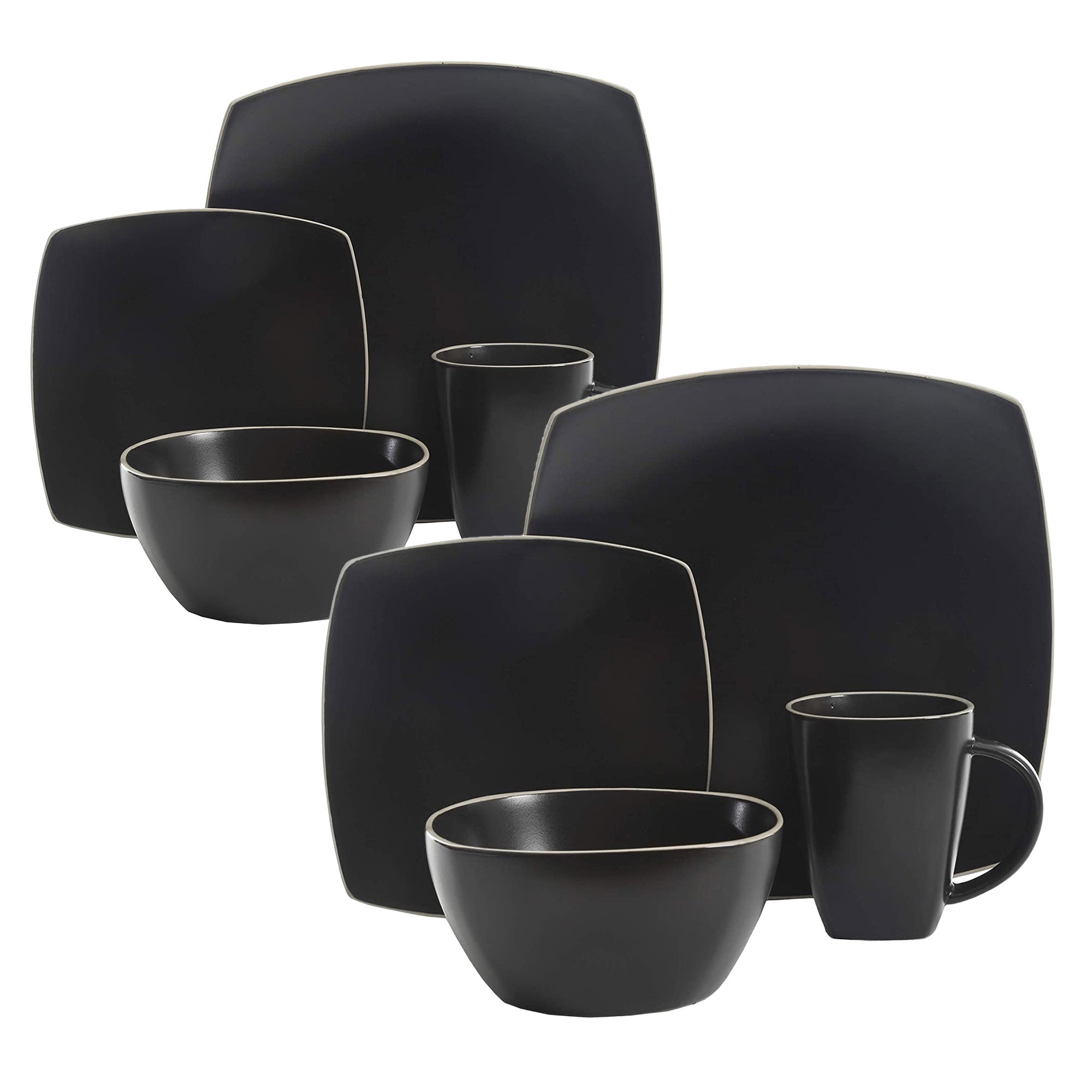 Gibson Elite Soho Lounge 16 Piece Dinnerware Set for 4, Matte Black (2 Pack)