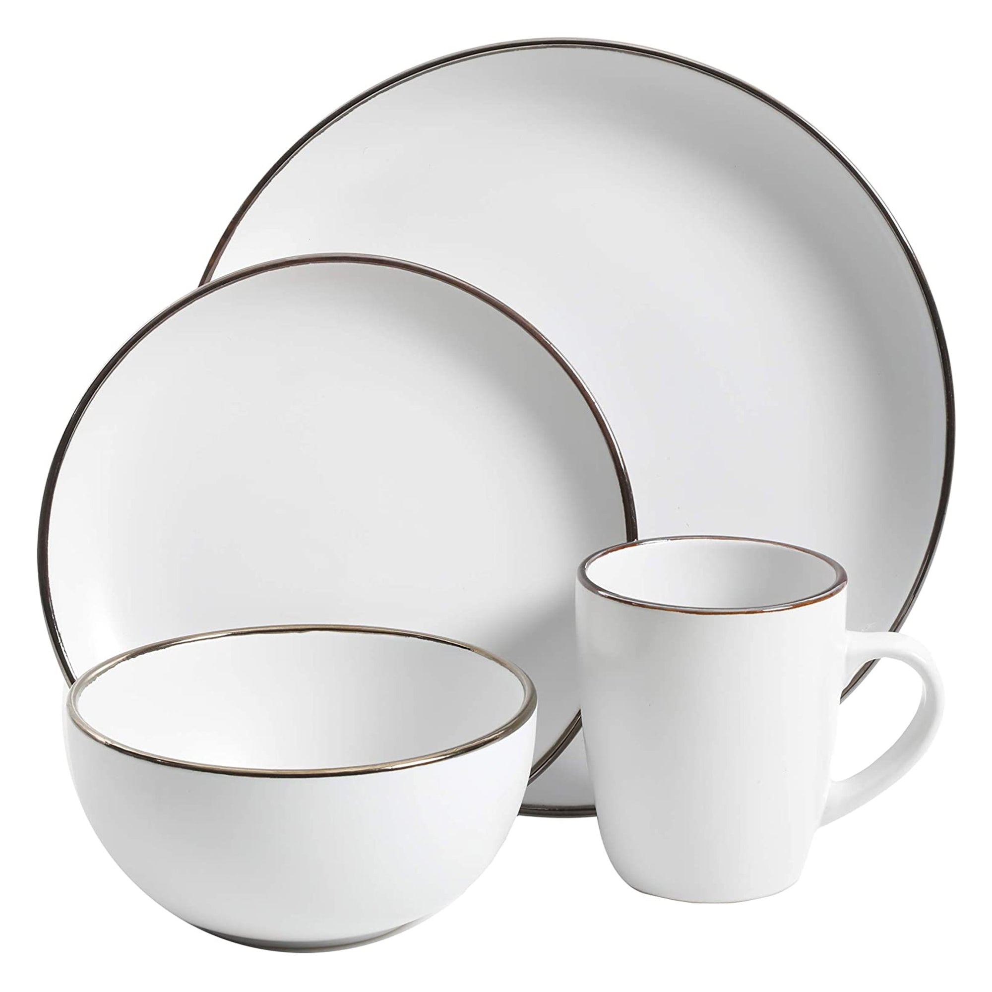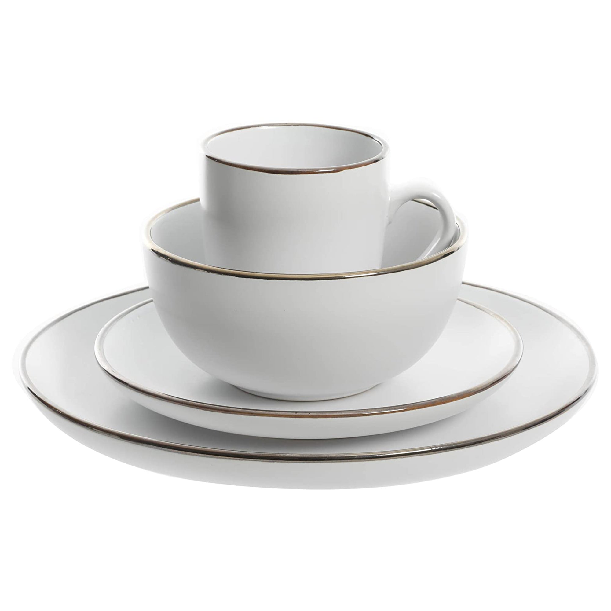 Gibson Home Rockaway Round Stoneware Dinnerware Set, Service for 4, Matte White