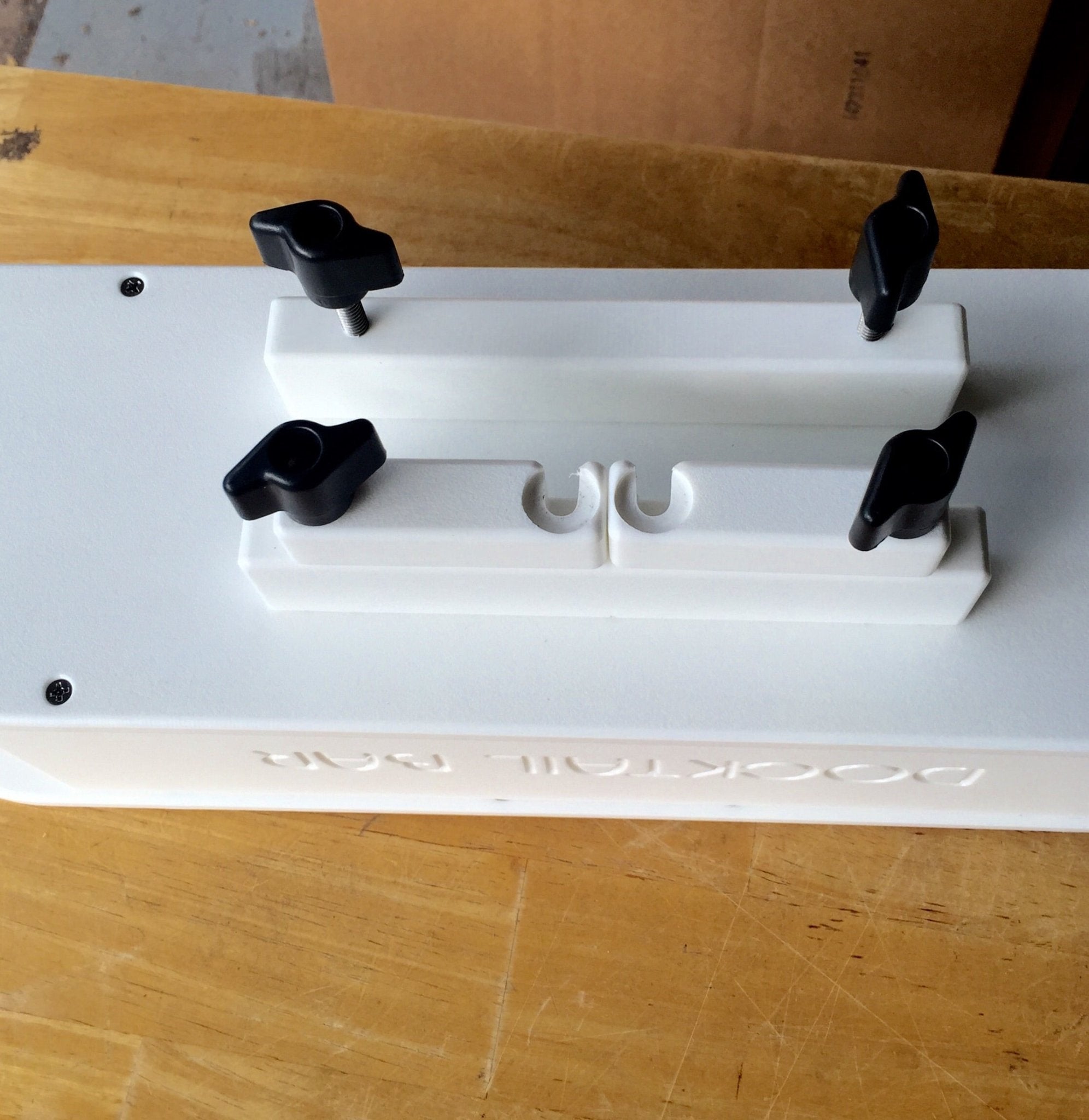 The Docktail Pontoon Caddy makes a great cup holder and storage system and was designed specifically for 1 1/4" Pontoon Rails. Ideal placement locations on pontoon boats are boarding and exit doors, top of ladders, and rails on the side of the helm or seating areas. Existing cup holders and storage of personal items never seem to be where you want them. Now you can grab a Docktail Pontoon Caddy and choose your perfect mounting location. Dimensions are 18 L x 5 W x 7 H and weighs 5lbs.