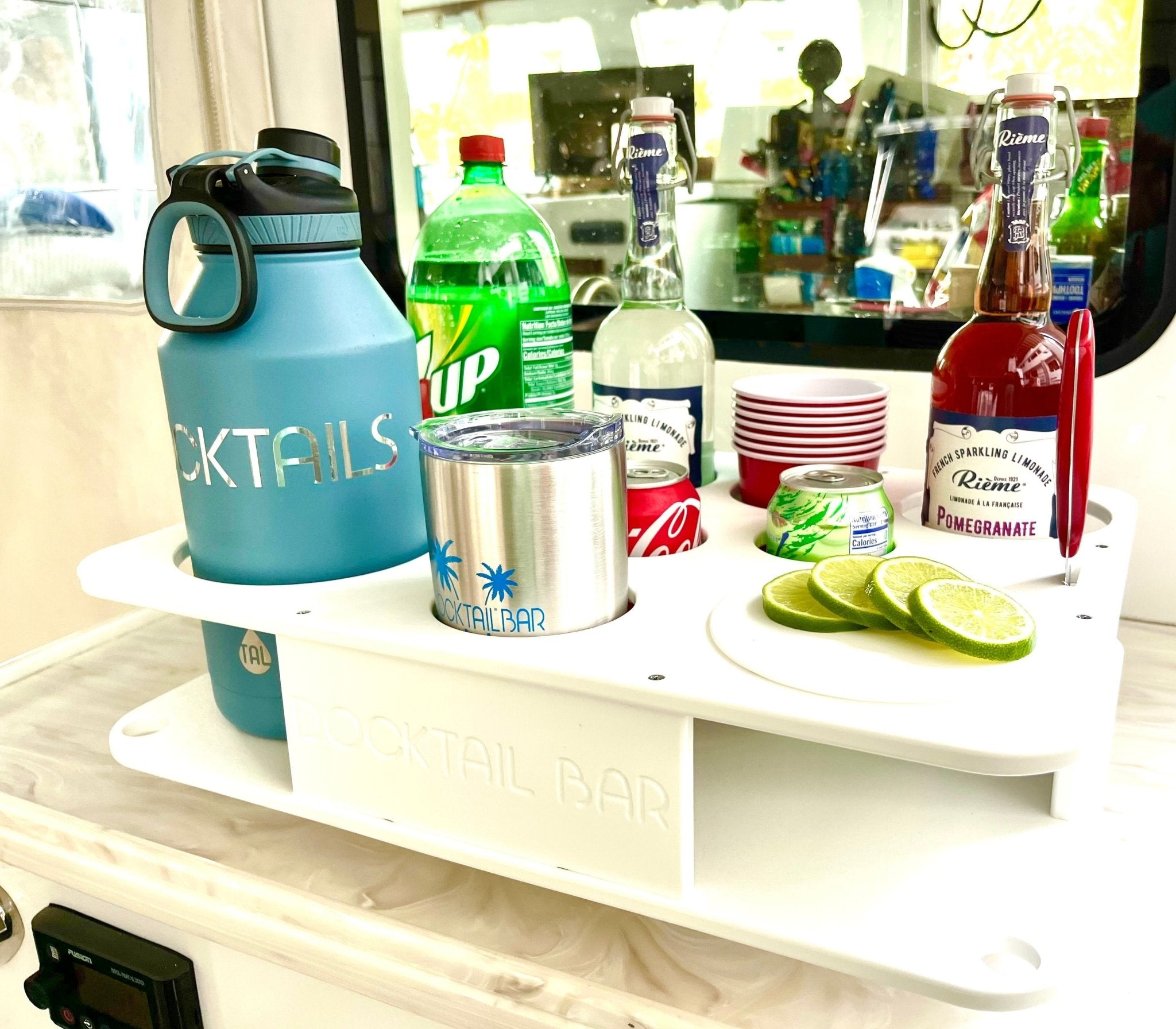 The Docktail Bar and table holds everything you can possibly want for a fun day on the water! No more worries about spilled drinks or broken glass from cups and bottles sliding around the rocking boat. Let the Docktail Bar hold your drinks so you can have all the fun!