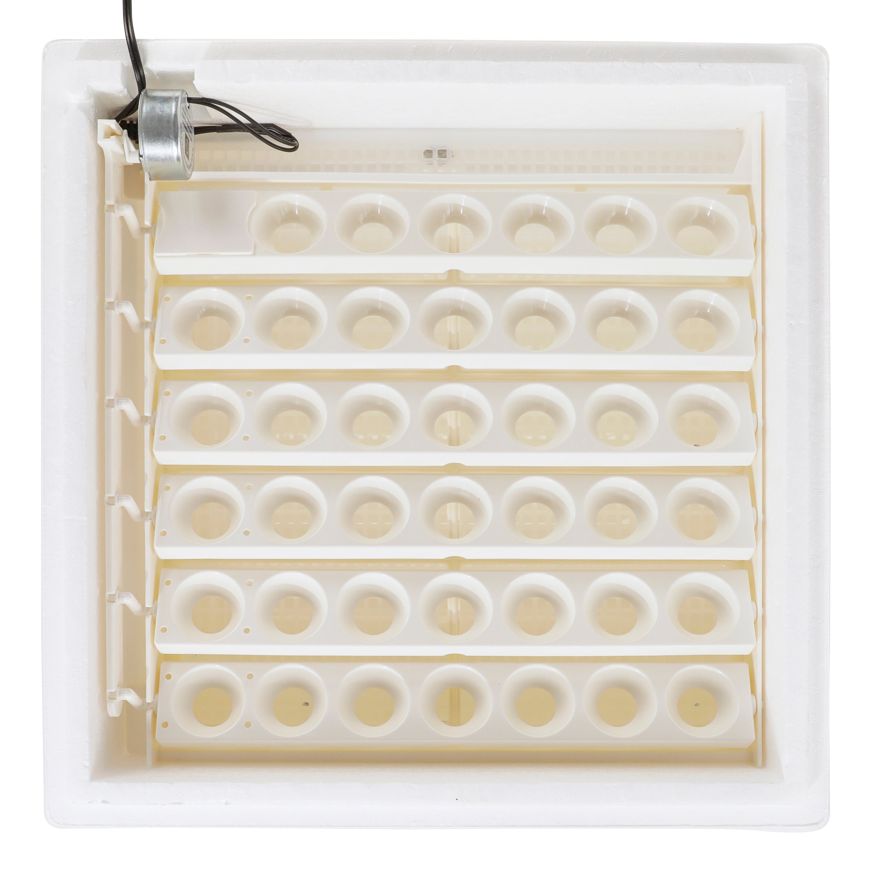 - Automatic egg turner eliminates manual handling for up to 41 eggs; deep bottom tray to accommodate even large duck & goose eggs