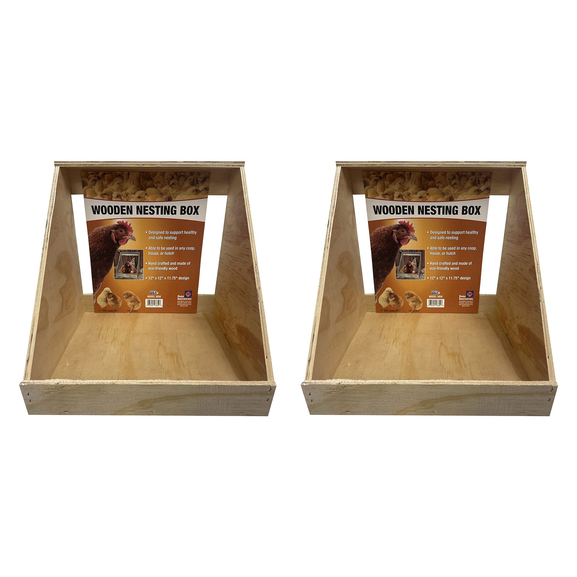 Farm Innovators Single Nesting Box for Chickens, Ducks and Birds, 2 Pack, Brown