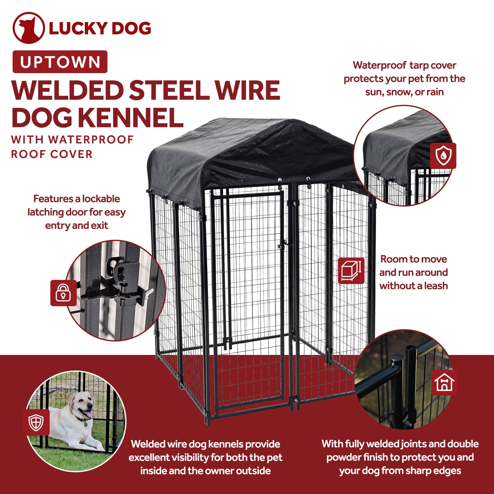 Your pupper deserves a place of his own that can keep him out of the elements while also giving him a sense of security. Give them the Lucky Dog Uptown Welded Wire Kennel and look forward to more tail wagging!