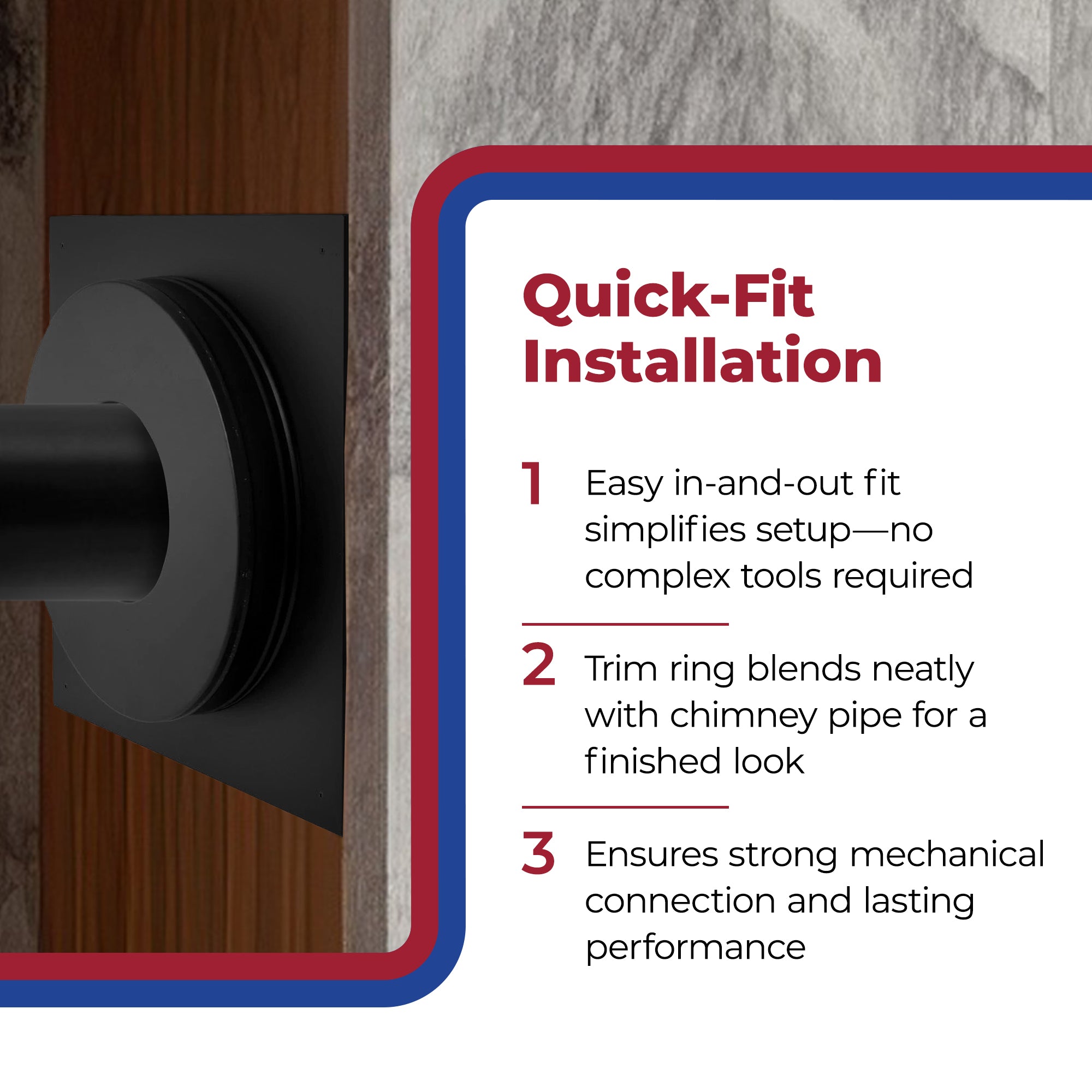 • Made of galvanized steel and painted black, this wall thimble trim will blend neatly with your chimney pipe