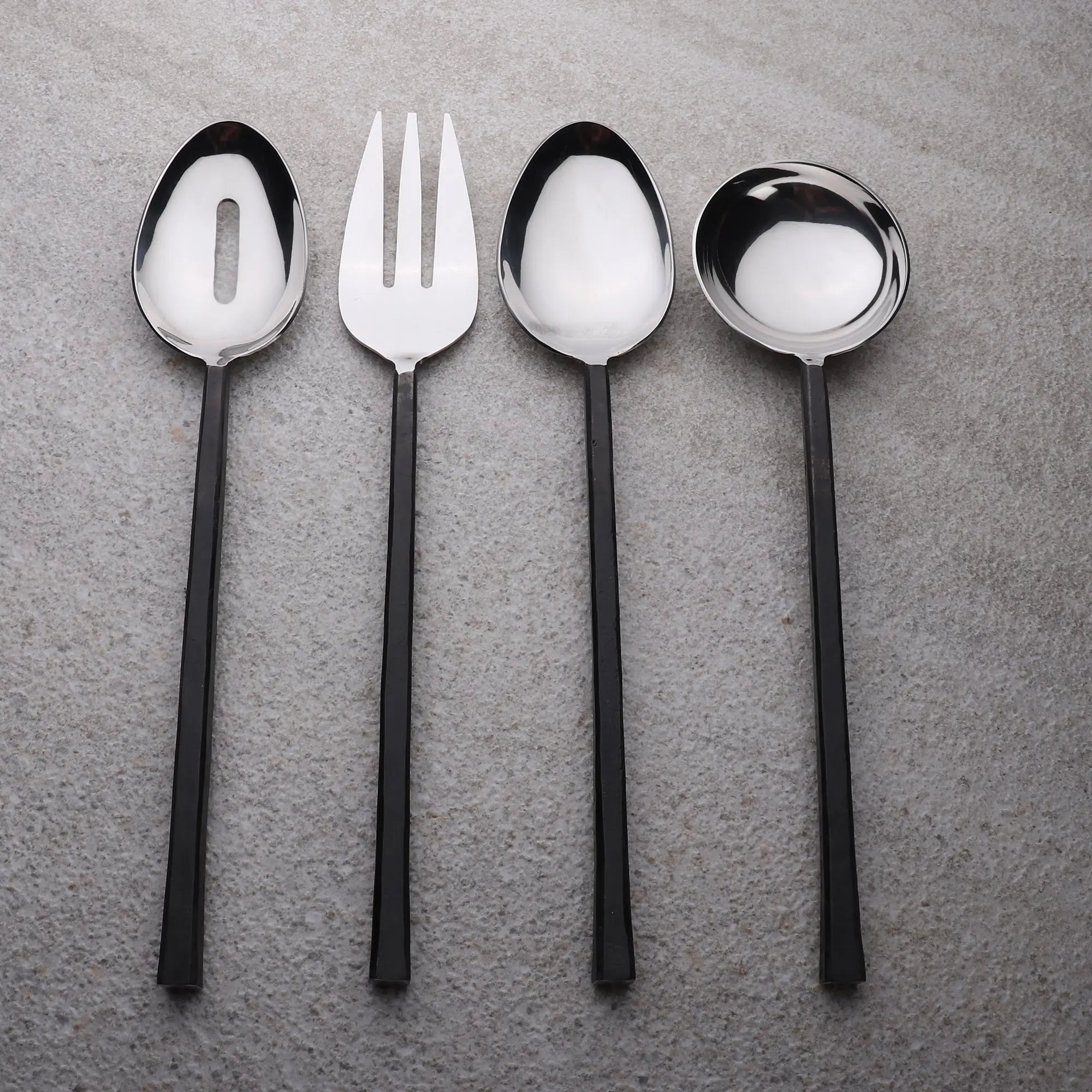 • Each set includes: 1 three-pronged fork, 1 slotted spoon, 1 serving spoon, and 1 sauce ladle