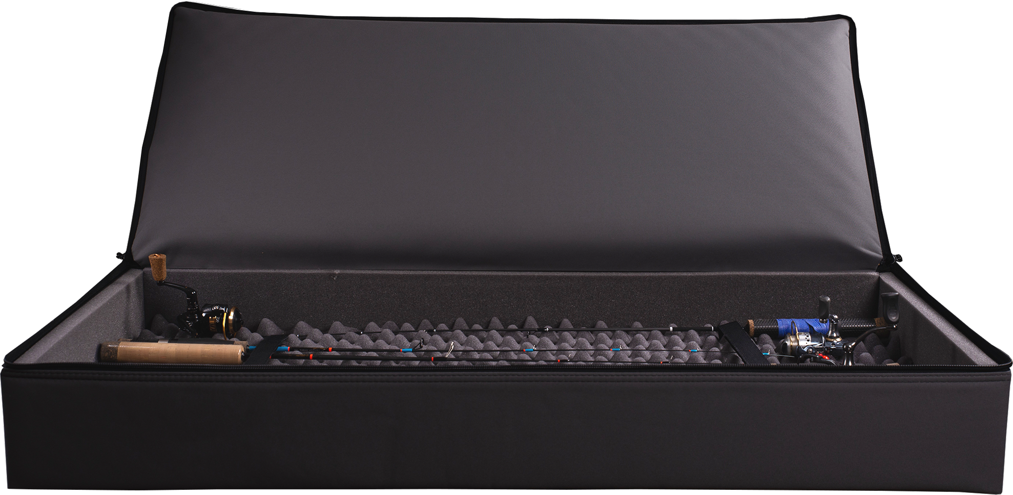 - Internal has foam bottom and sides as well as additional foam added to lid to help hold rods in place.