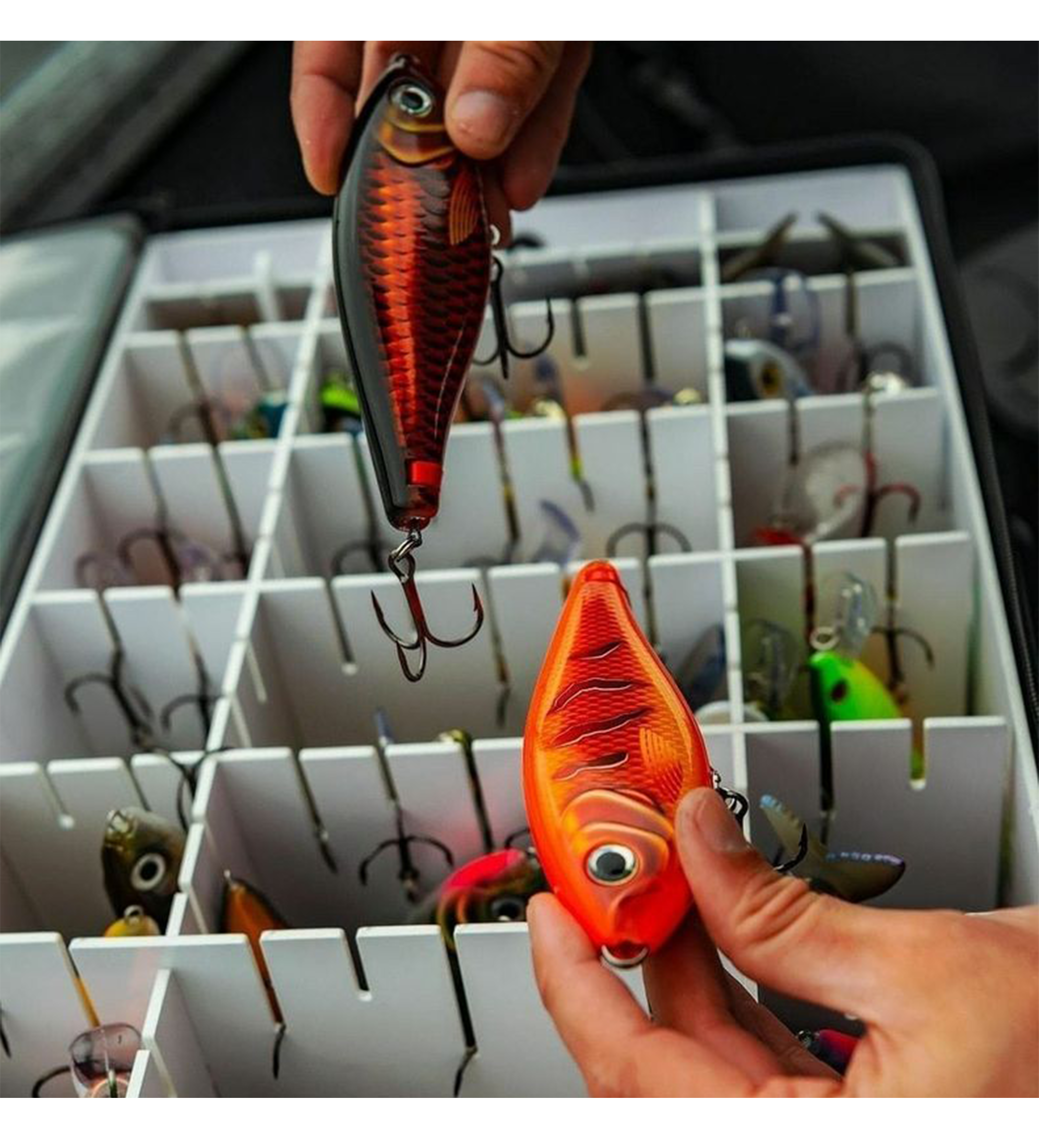- 5 removable/adjustable dividers and 4 solid hanging lure dividers