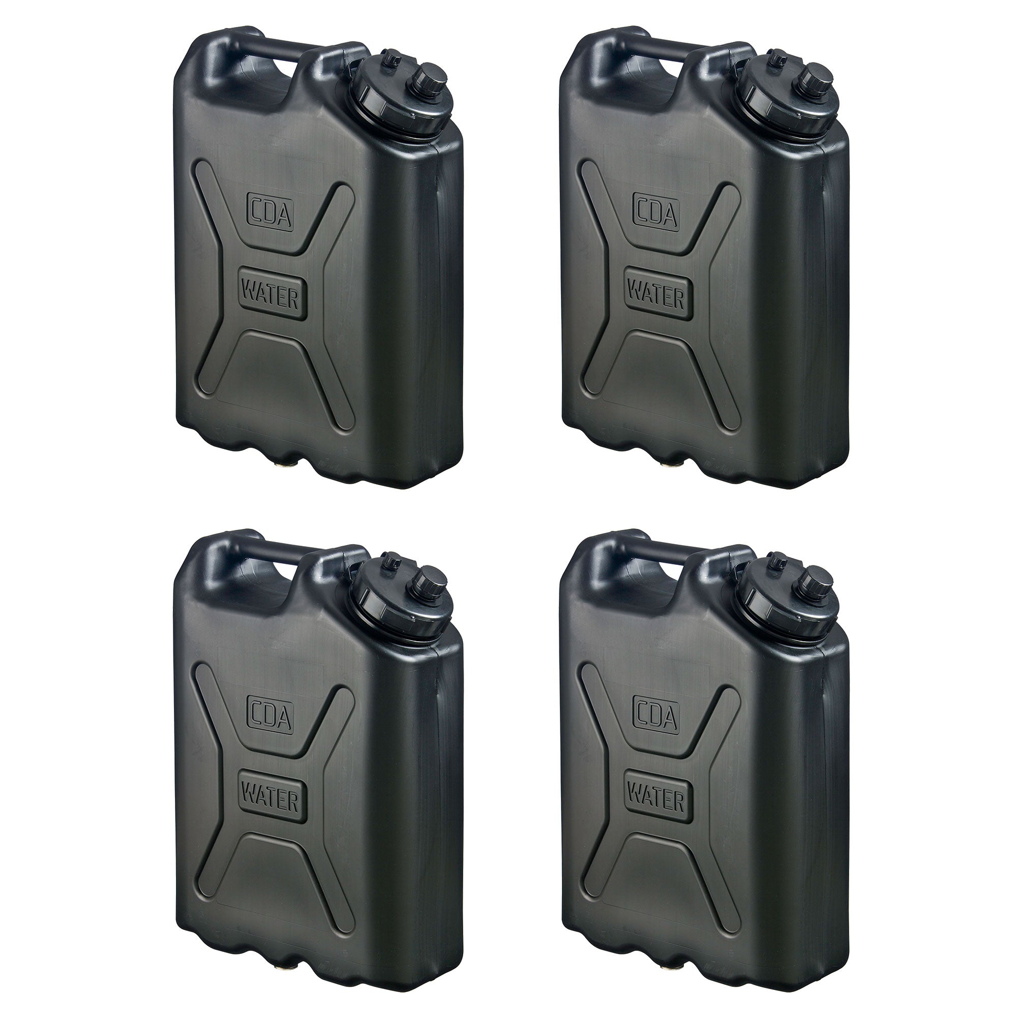 Scepter 5 Gallon Heavy Duty Military Style HDPE Water Container, (4 Pack), Black