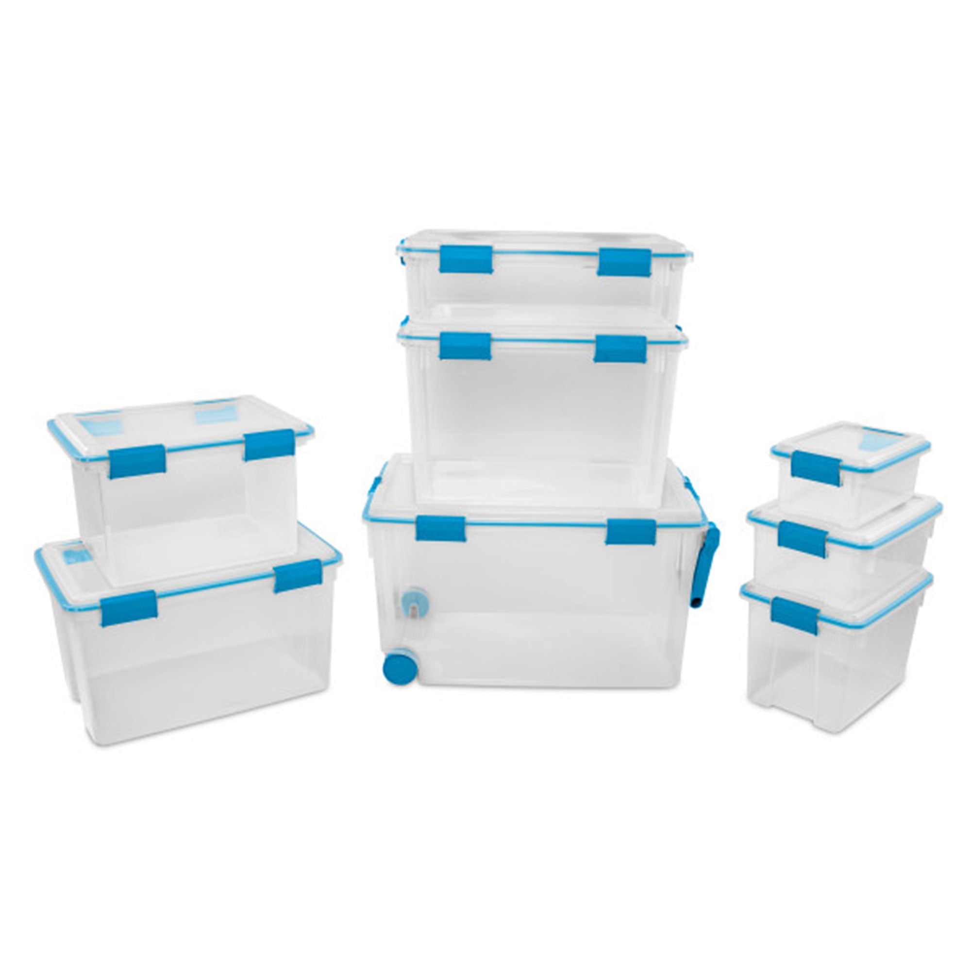The clear plastic base and lid make it easy for you to see the contents, so you don't have to dig around to find what you need. The handles are comfortable and optimal for transportation. Store your items safely and protect them from air and moisture in the 18-Pack Sterilite 20-Quart Gasket Clear Storage Boxes.