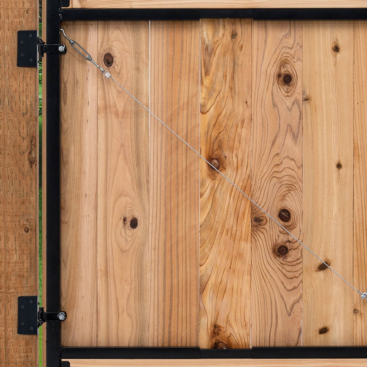 This kit includes a patented truss cable that will keep your gate from sagging or dragging for years to come. You can use it to fix an existing gate or to build a brand new gate up to 96 inches wide. This easy-to-install kit is equipped with all necessary hardware needed to install this system on-site. This kit will fit gate openings that are 60-96 inches wide and fences up to 6 feet high.