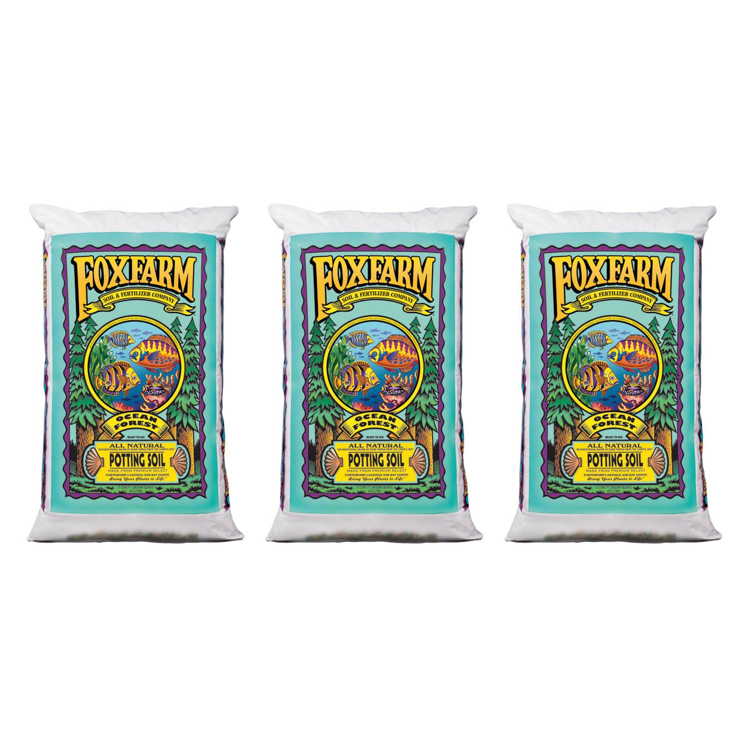 Foxfarm Ocean Forest Garden Potting Soil Bags 6.3-6.8 pH, 1.5 Cubic Feet, 3 Pack