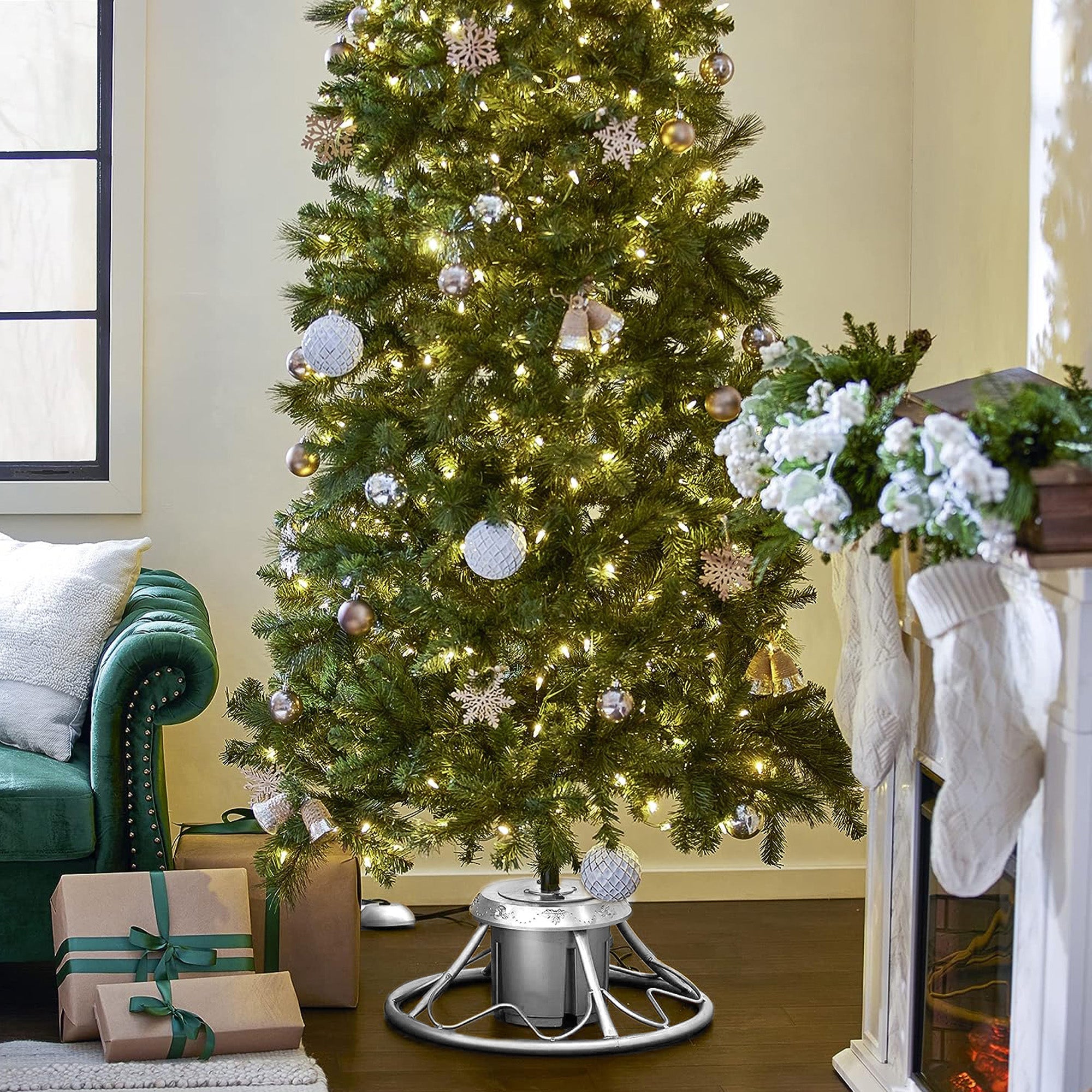 - Experience the holidays hassle-free with the durable, high-quality, rotating artificial Christmas tree stand