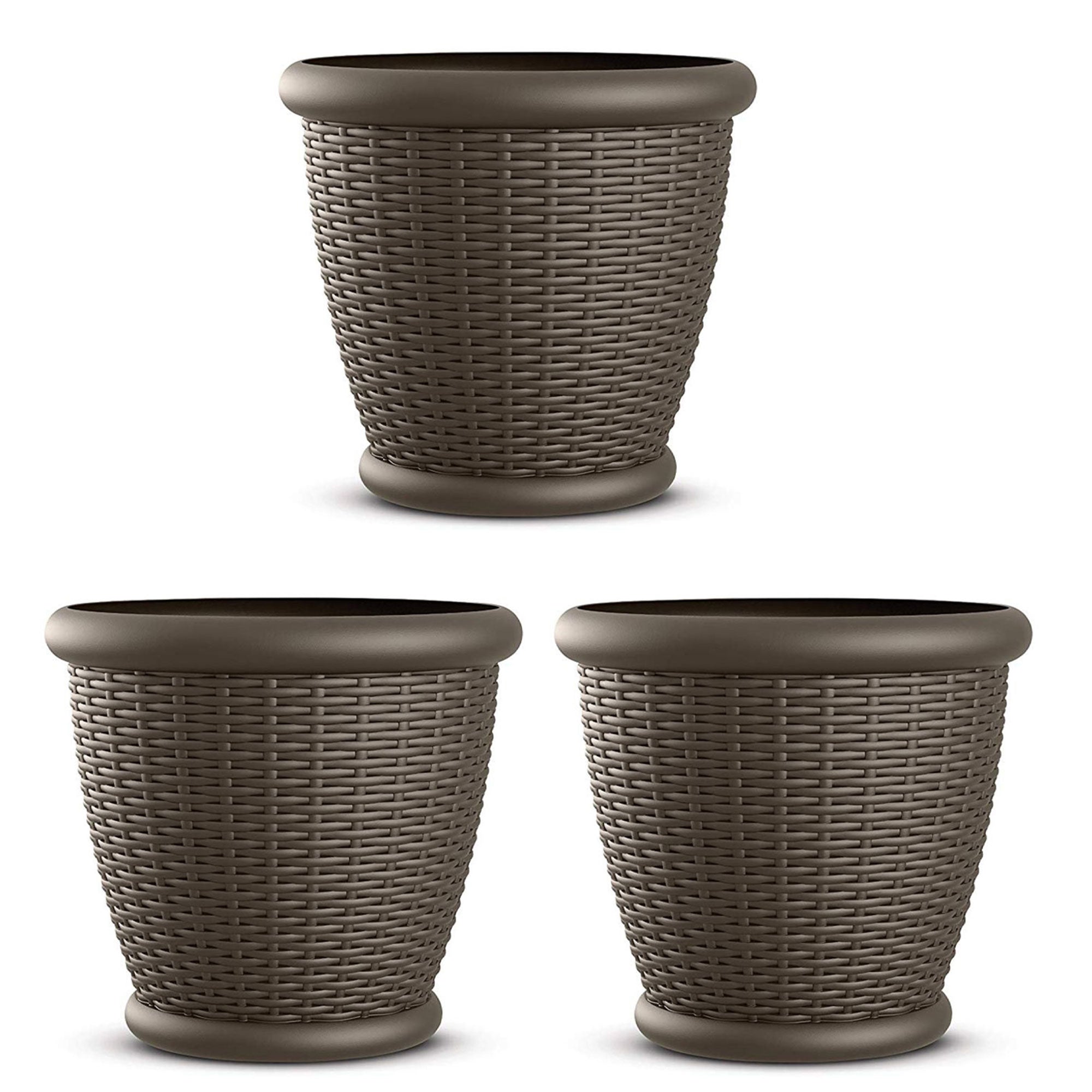 Bring some beauty to your home or yard with these 3 packs of Suncast Willow 18-inch Plastic Decorative Wicker Patio Planter Pot.