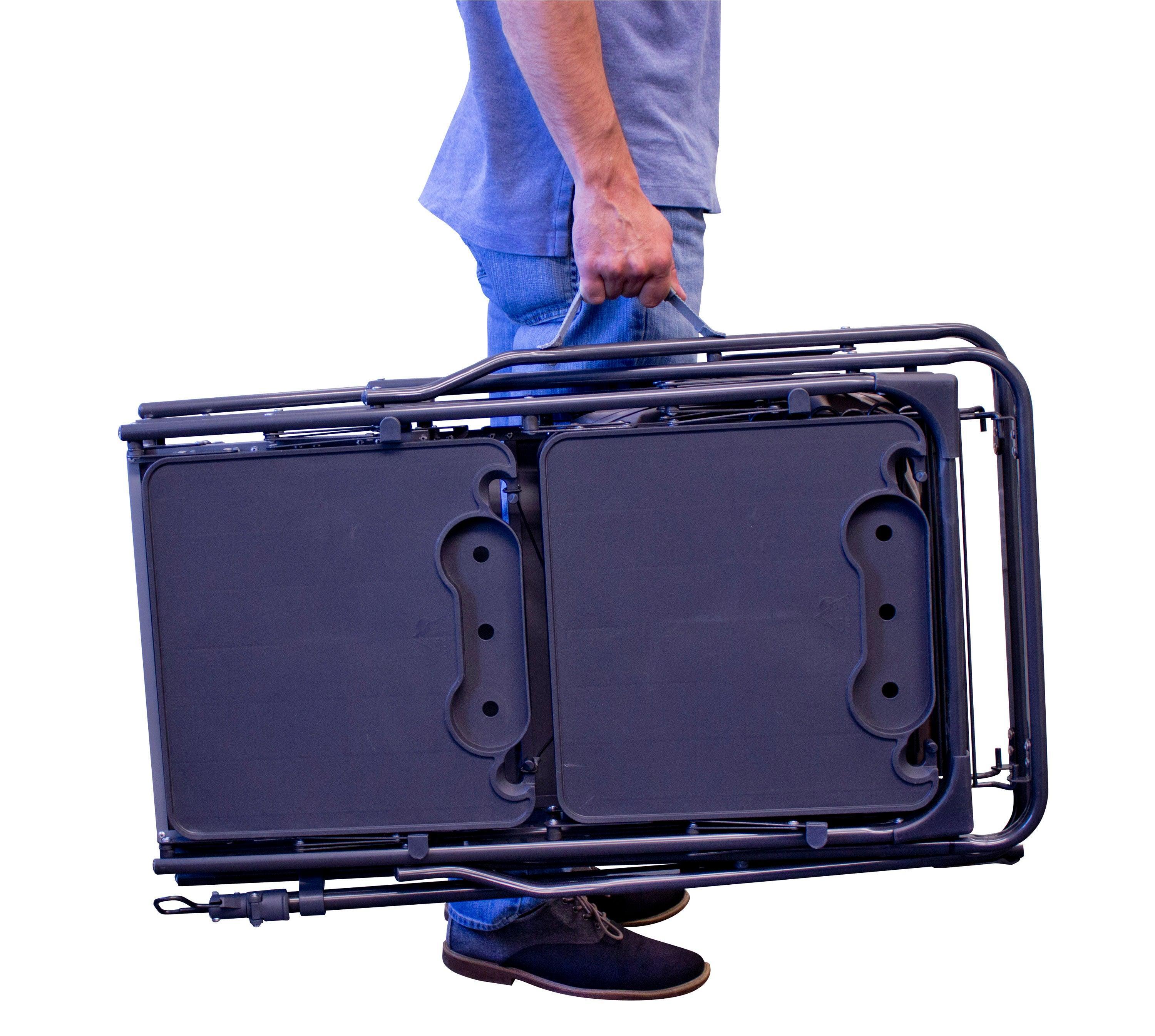 Folding Camping Table: Folding camp table brings the kitchen outside with enough counter and storage space to accommodate camp kitchen equipment like stoves and grills, cooking utensils, and cookware
