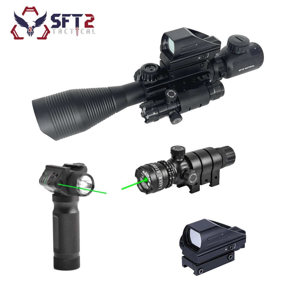 SFT2 Tactical ModScope: This isn’t your average scope — it’s a complete targeting system. This tactical rifle optics combo starts with crystal-clear glass, configured in either 4-12x or 4-16x for long-range precision. A rapid-acquisition red dot for close-quarters threats. And a built-in laser for fast, instinctive shots when you’re shooting from awkward positions or on the move. This precision rifle optic with integrated picatinny rails lets you mount extra gear without throwing off your setup.