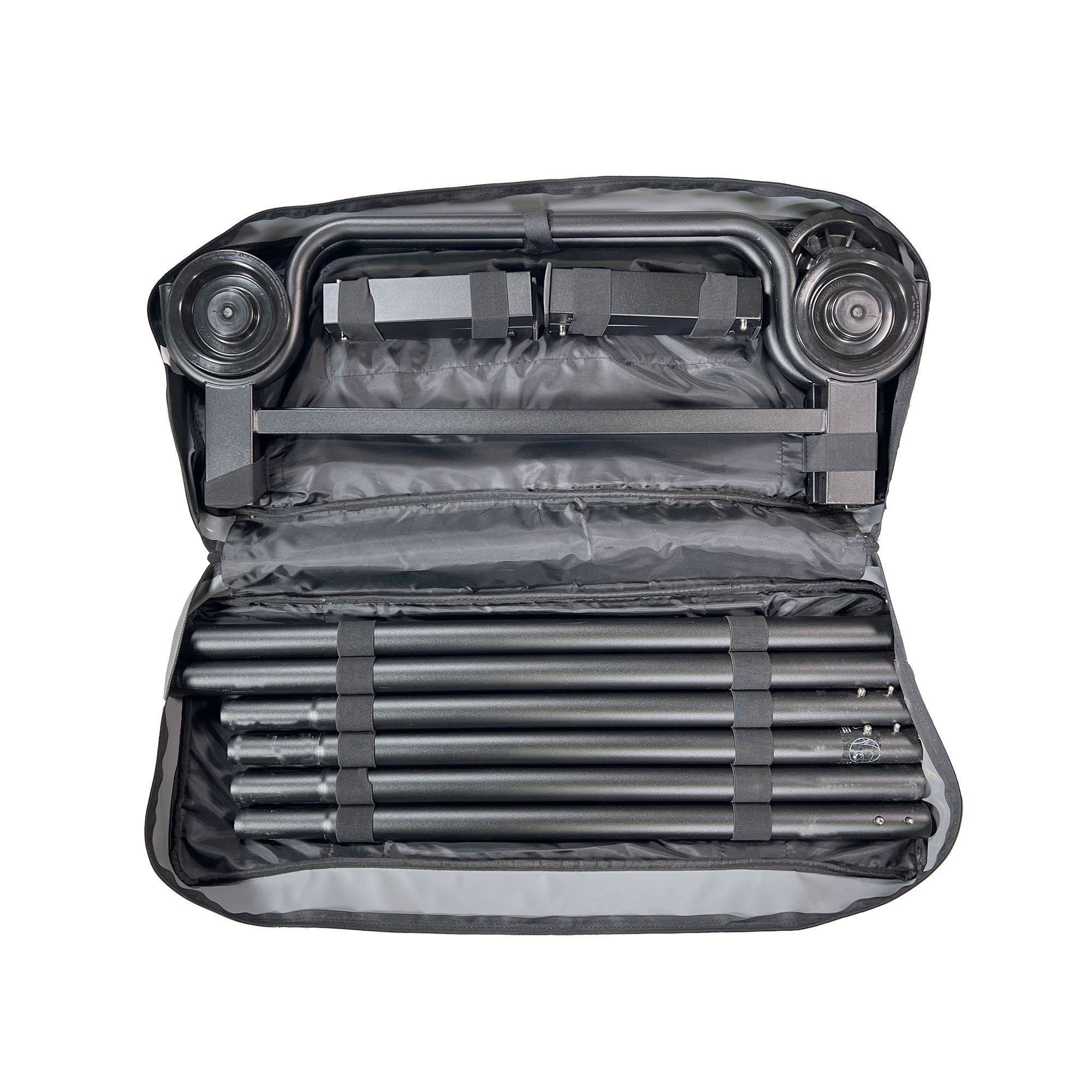 • Breaks down into a compact size and fits into a zippered carry bag for easy storage and transportation