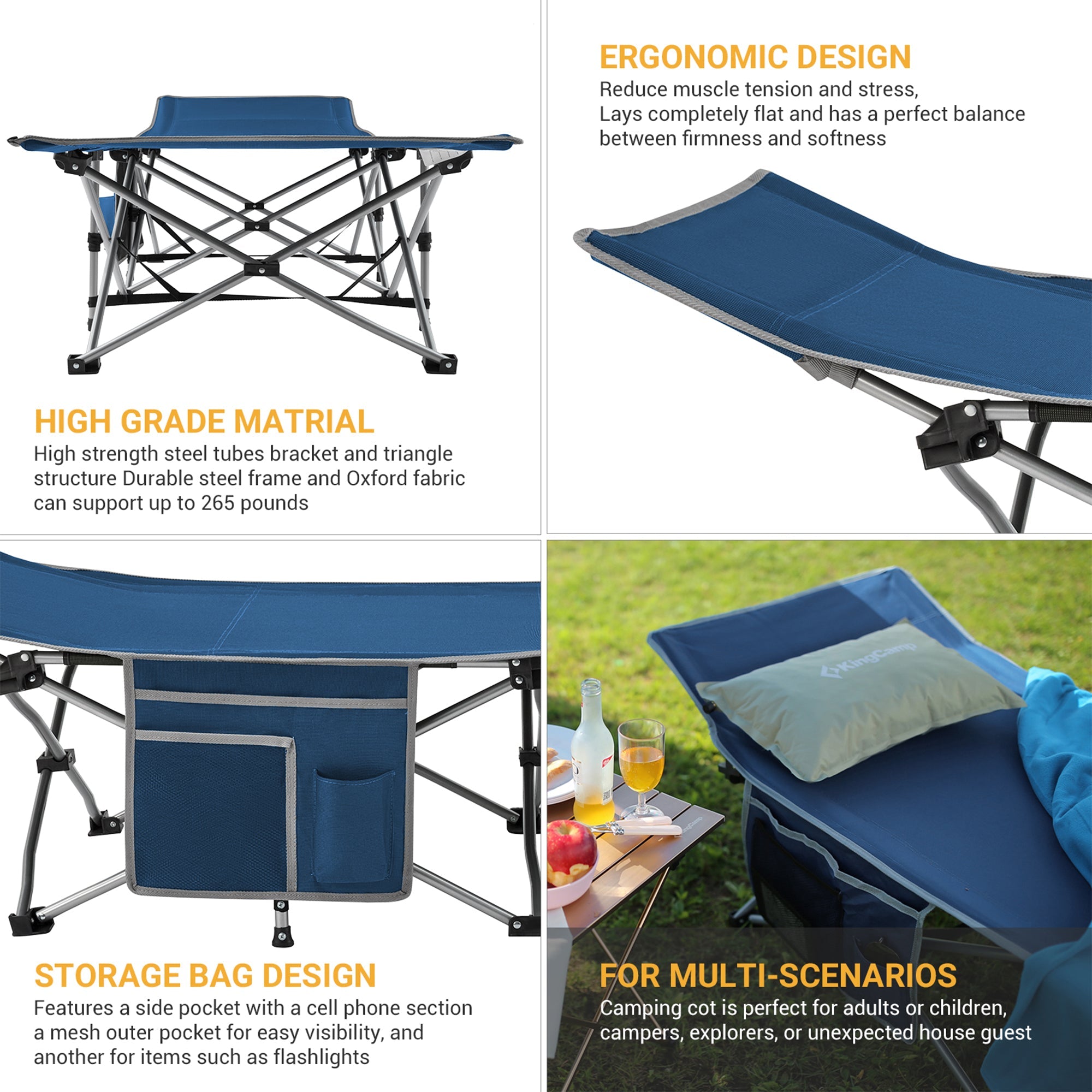 KingCamp Folding Portable Outdoor Camping Cot w/ Multi Layer Side Pocket, Blue