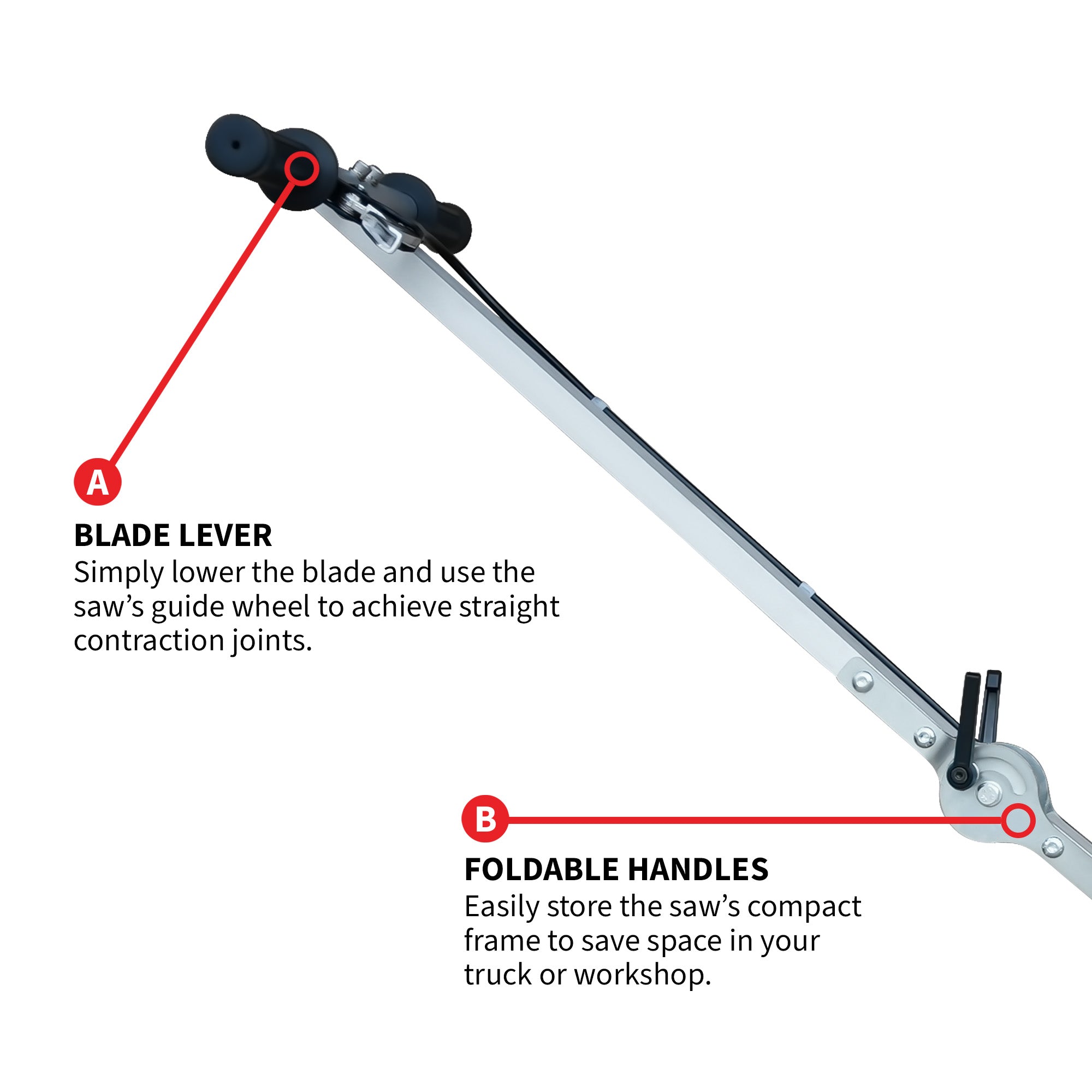 Use the saw's convenient operator station and lowering lever to smoothly engage the saw's 6" blade for more efficient cutting on green concrete!